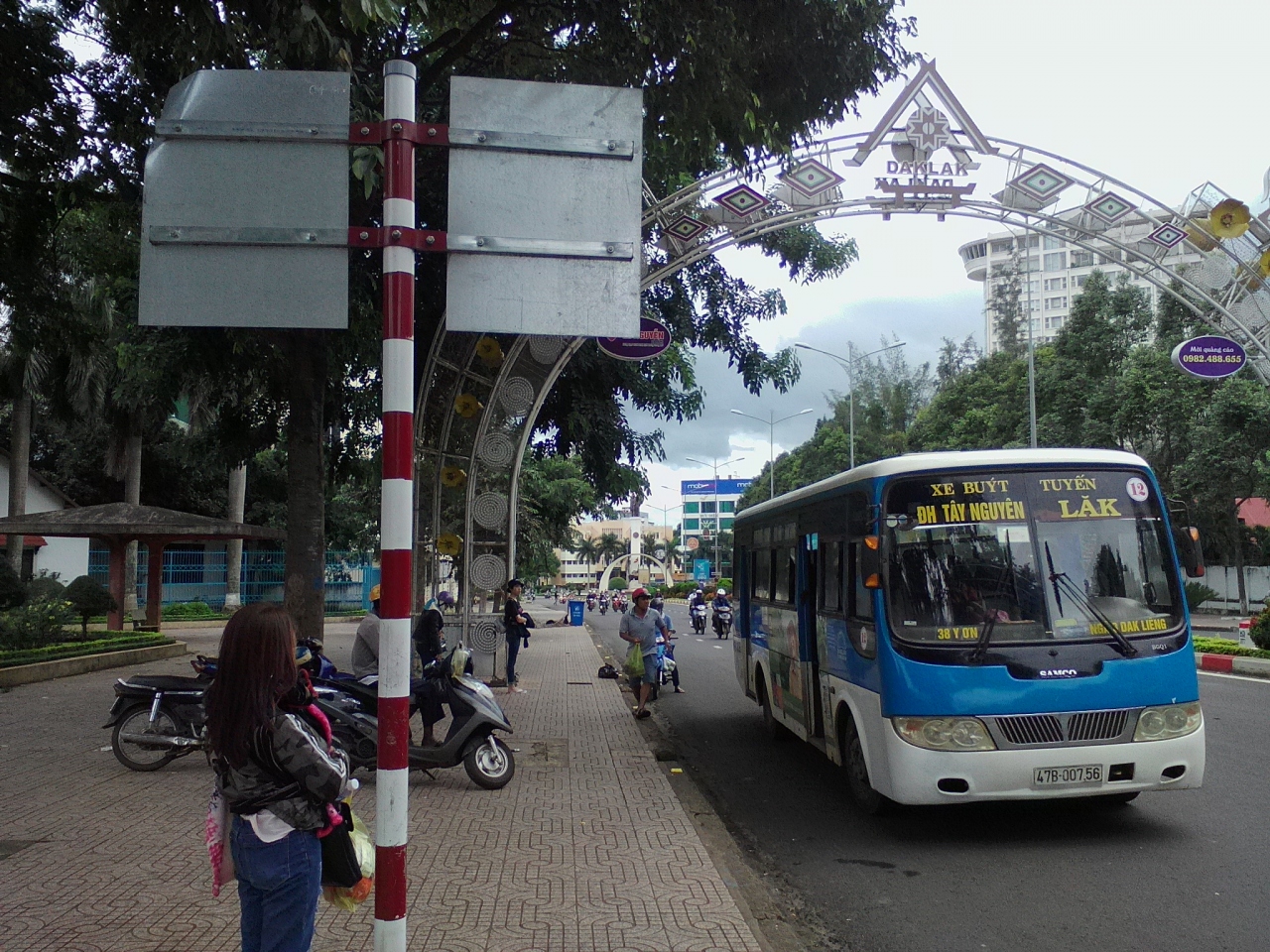 私はダラットからバンメトートに行く際に立寄り1泊しました。村のロングハウスにも泊まれるようですが私は国道沿いのホテルに1泊。Lien Sonという町で小さいながらも市場もあり、ホテルも数軒あります。ジュン村までは1kmないくらいです。Lien Son からバンメトートへは路線バスが走っており、戦勝記念碑まで行きます。所要1時間15分、3万2000ドン。バンメトートから行く際は戦勝記念碑近くのバス停かコープマート前から乗ればいいです。バスの色はブルーと白のツートンですが他の路線も同じ色なのでフロントガラスの「LAK」で判別して下さい。(写真参照、「LAK」の表示のあるワゴン車もあります)。バスのルートは