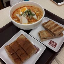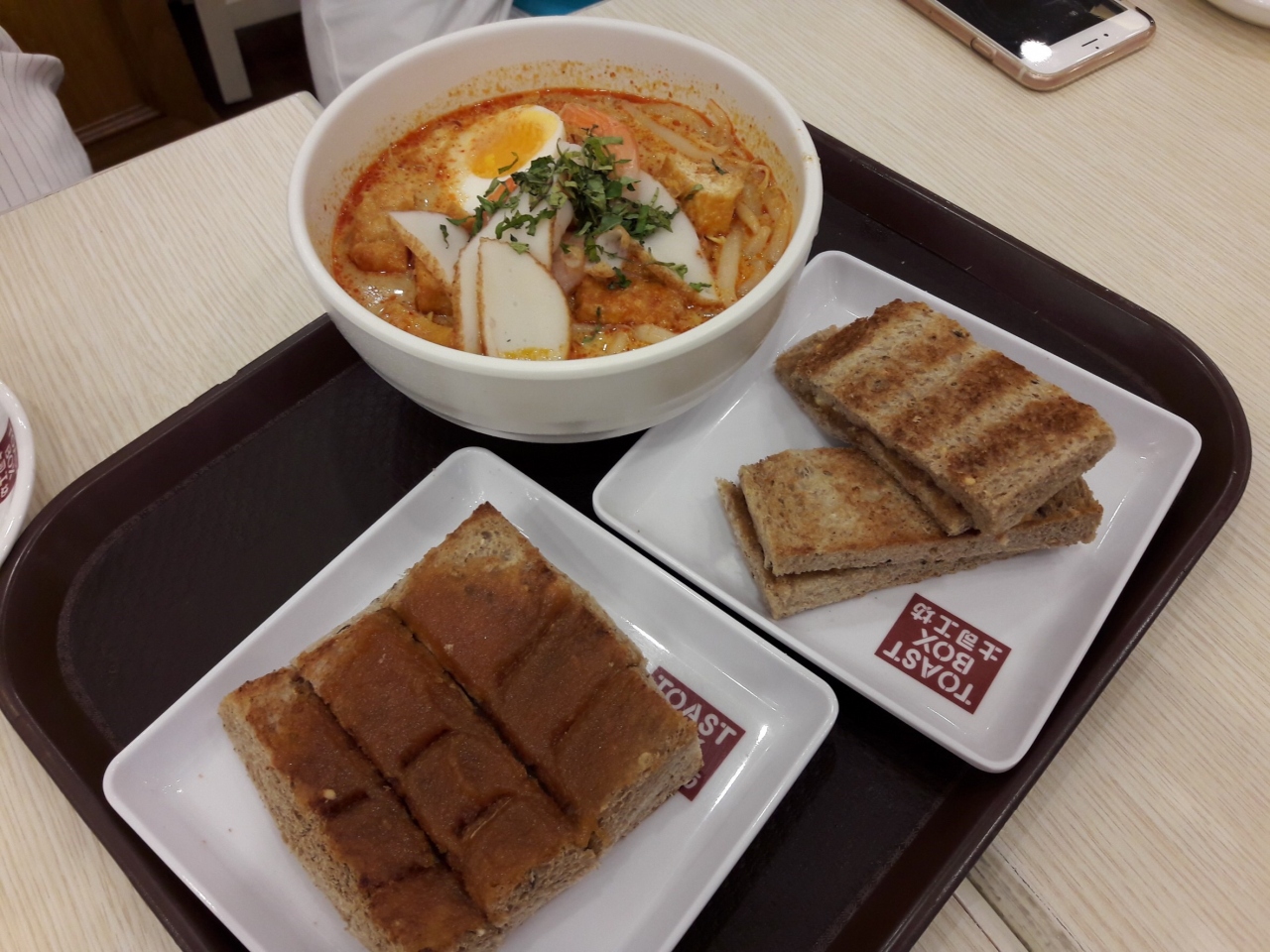 カヤトーストを食べてみたくて、マリーナベイサンズのモールにあるお店に行きました。パンの種類がいくつもあって、注文の仕方がよくわからなかったので、適当に頼みました。友達がラクサも食べてみたいというので、そちらも注文しました。1つのお店で両方食べられるのはいいですね。カヤトースト、美味しかったです。
