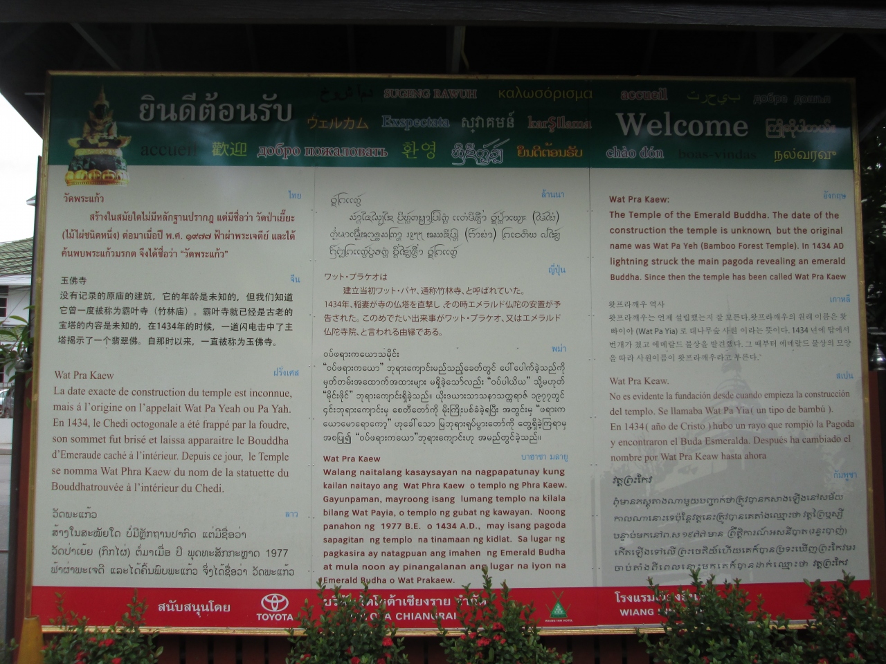 チェンライ市内では主要な寺院であるためか、ワットプラケオの境内に日本語による丁寧な解説がありました。日本語のほかには英語はもちろん、中国語、韓国語の解説があり、海外からの観光客が多い寺院であることが分かりました。チェンライ市内の寺院に20軒以上訪問しましたこういった解説があったのはココだけでした。