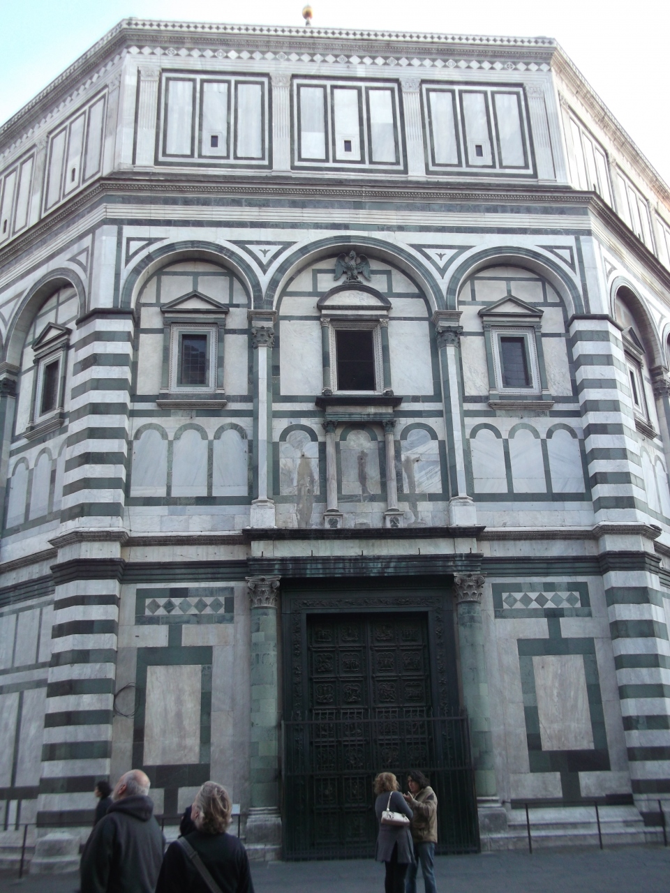 サンタ・マリア・デル・フィオーレ大聖堂のドゥオーモやジョットの鐘楼に隣接して建つサン・ジョヴァンニ洗礼堂です。八角形をした洗礼堂の壁には幾何学的な模様が施されていて、ドゥオーモと鐘楼と一緒に並ぶ位置から眺めるととても絵になって見えます。夜はライトアップされるので、日中とはまた違った表情を見せてくれます。