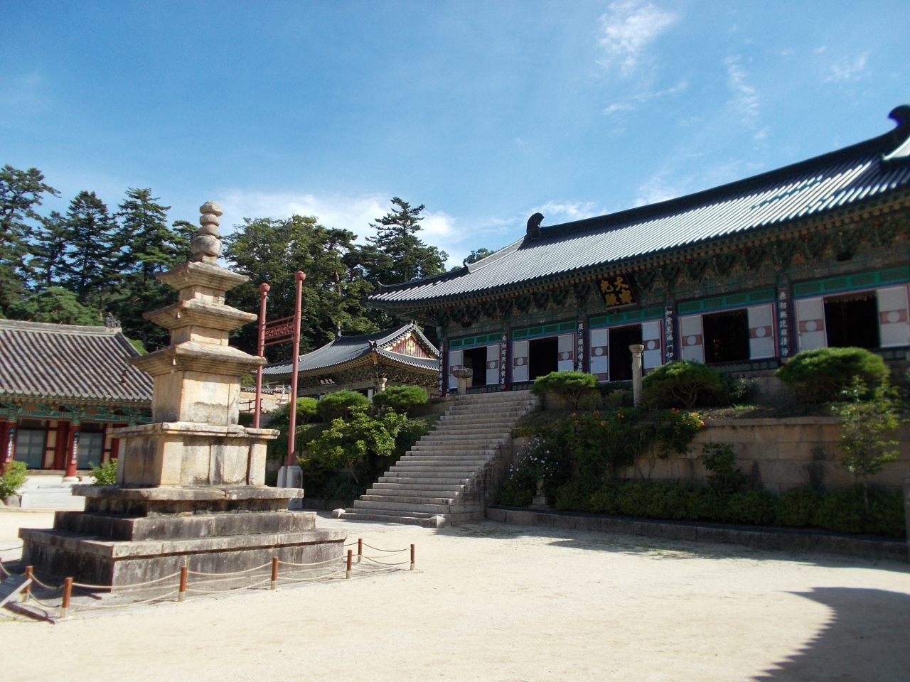 山の中のお寺、大邱の街中は蒸し暑いので、涼を求めて朝一のバスでお寺に行きました。大邱の西部バスターミナル一便は6:40が始発でした。朝の時間はお寺は静かで、のんびり見学ができました。そしてお寺近くのバス停を10:00で大邱市内に帰ってきました。昼は大邱で昼食を食べることができます。