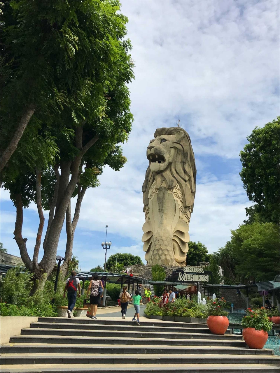 マーライオンは世界3大がっかりのひとつだそうですが、このマーライオンは当地では何カ所にでもあるそうです。その内のひとつがこの巨大マーライオン。最大の大きさということで、この中に入って顔の辺りから外を眺めることが出来るそうです。そんなこともあってか、多くの方々がこの駅周辺におりました。