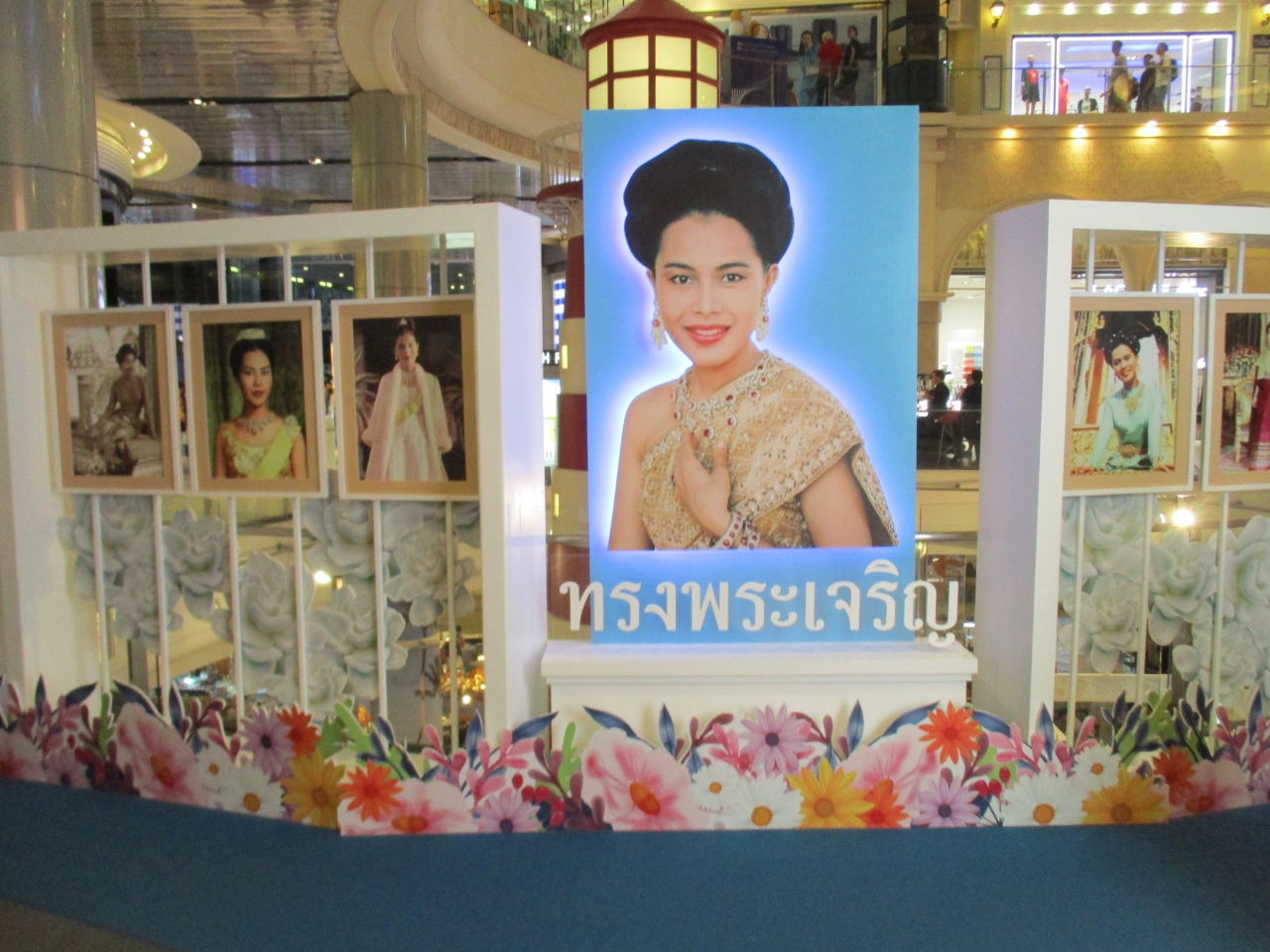 8月12日はクイーンシリキット王妃生誕記念日で、タイにおける「母の日」でもあります。母の日が近づくとバンコクの街中で王妃様の写真が飾られます。王様が変わりましたが2018年も王妃様の誕生祝いを継続して行っていました。ターミナル21のM階で王妃様の写真展が開催されていました。王妃様の若い頃の貴重な写真も展示されており、王新国王ワチラーロンコーンやシリントーン王女の幼少期の写真を見ることができました。