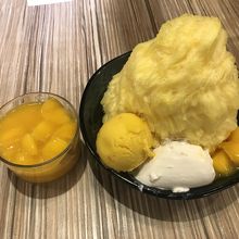 マンゴーの氷をふわふわに削ったものに生マンゴー、マンゴーソース、マンゴーアイスクリームが添えられていて、とても美味しく、最後まで飽きずに食べられます。