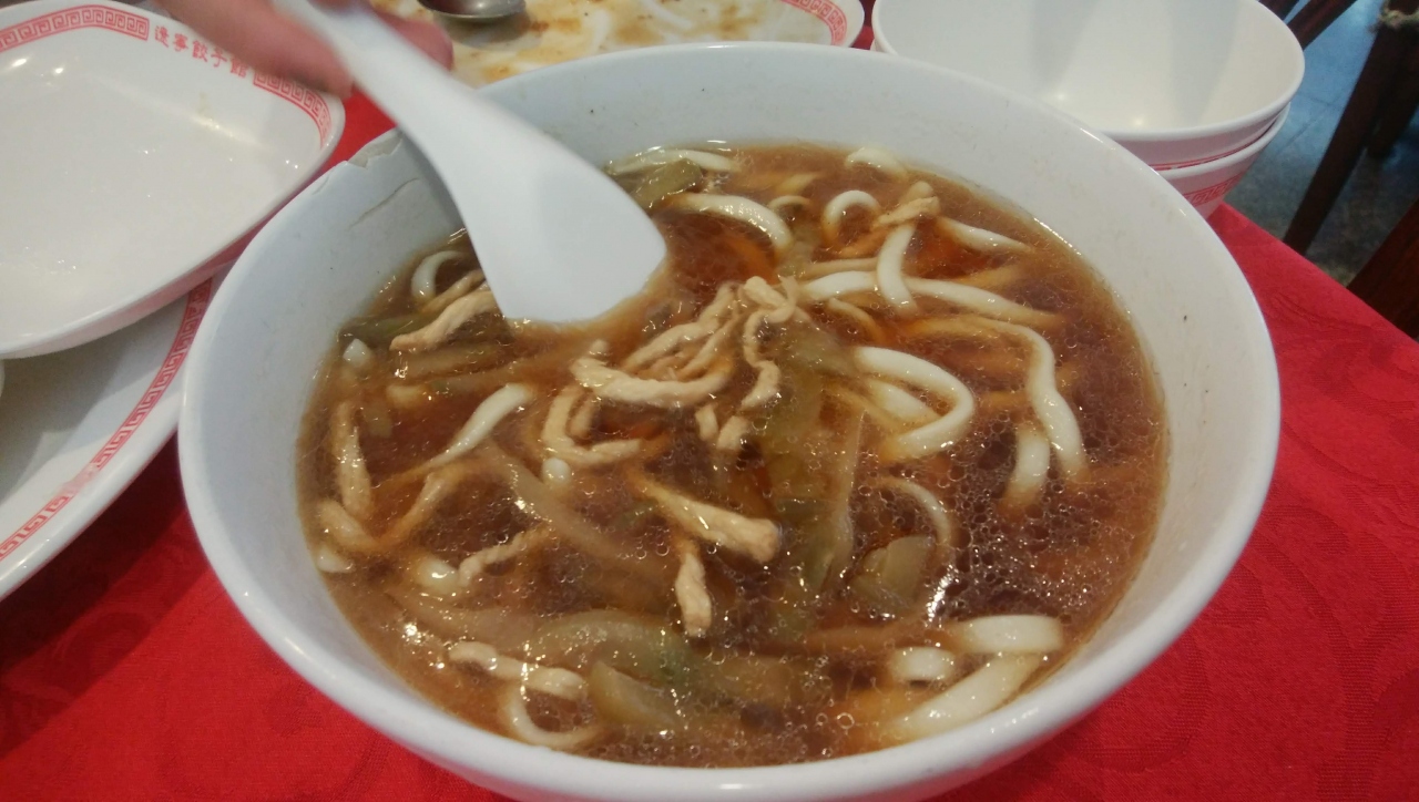 <ポイント>餃子を食べたくなったら行くお店。水餃子に焼き餃子など餃子の種類が報復。どちらかといえばあっさり目で少し生姜が入っている。麻婆豆腐は全く辛味ゼロ。手打湯麺はうどんのような麺とスープ。餃子メインがおすすめ。焼き餃子、水餃子、麻婆豆腐、手打湯麺、ソーダ、コーラで500Baht