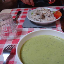 4人くらい座れるテーブルがいくつかあり 空いている席に座ります
