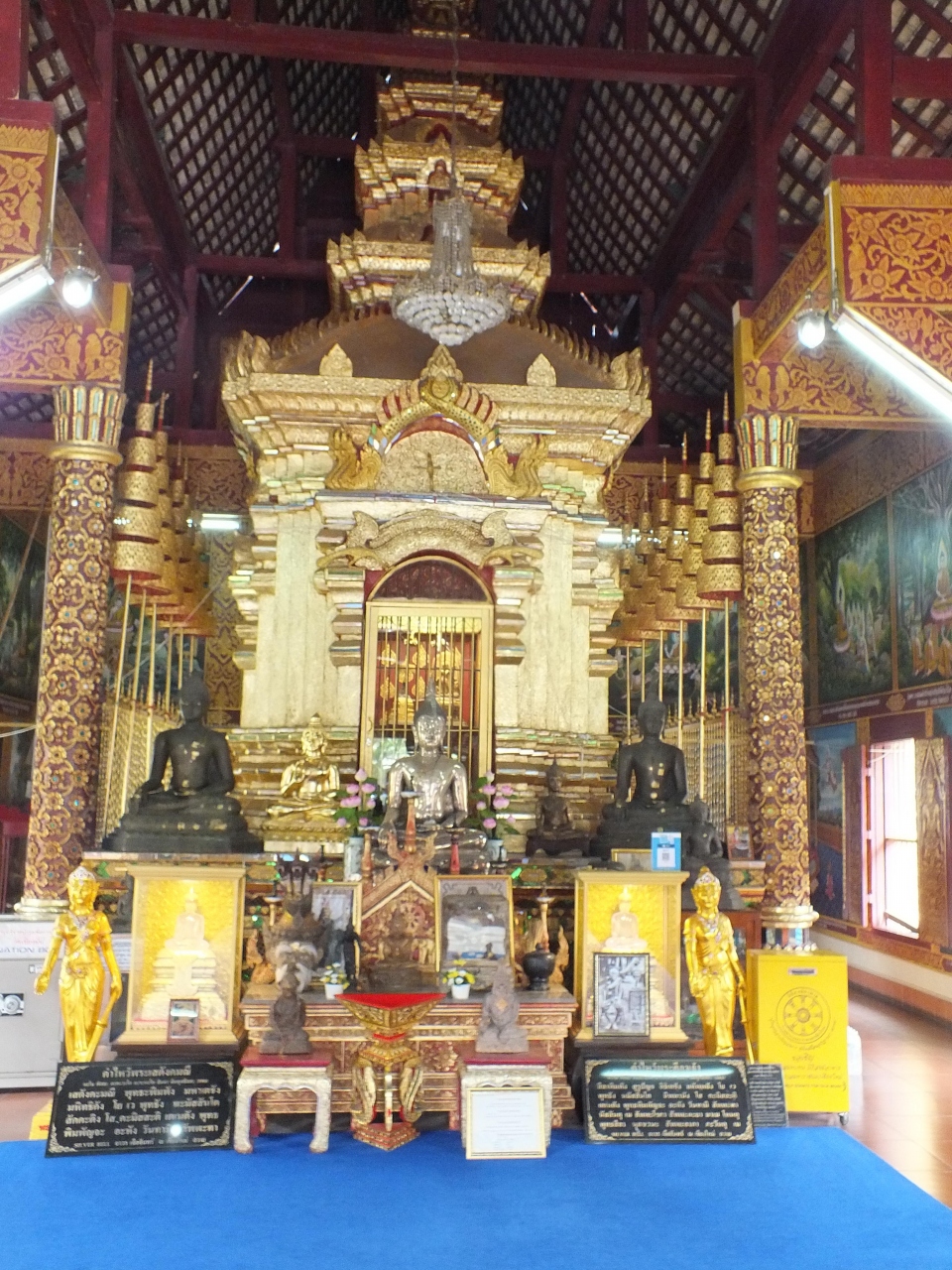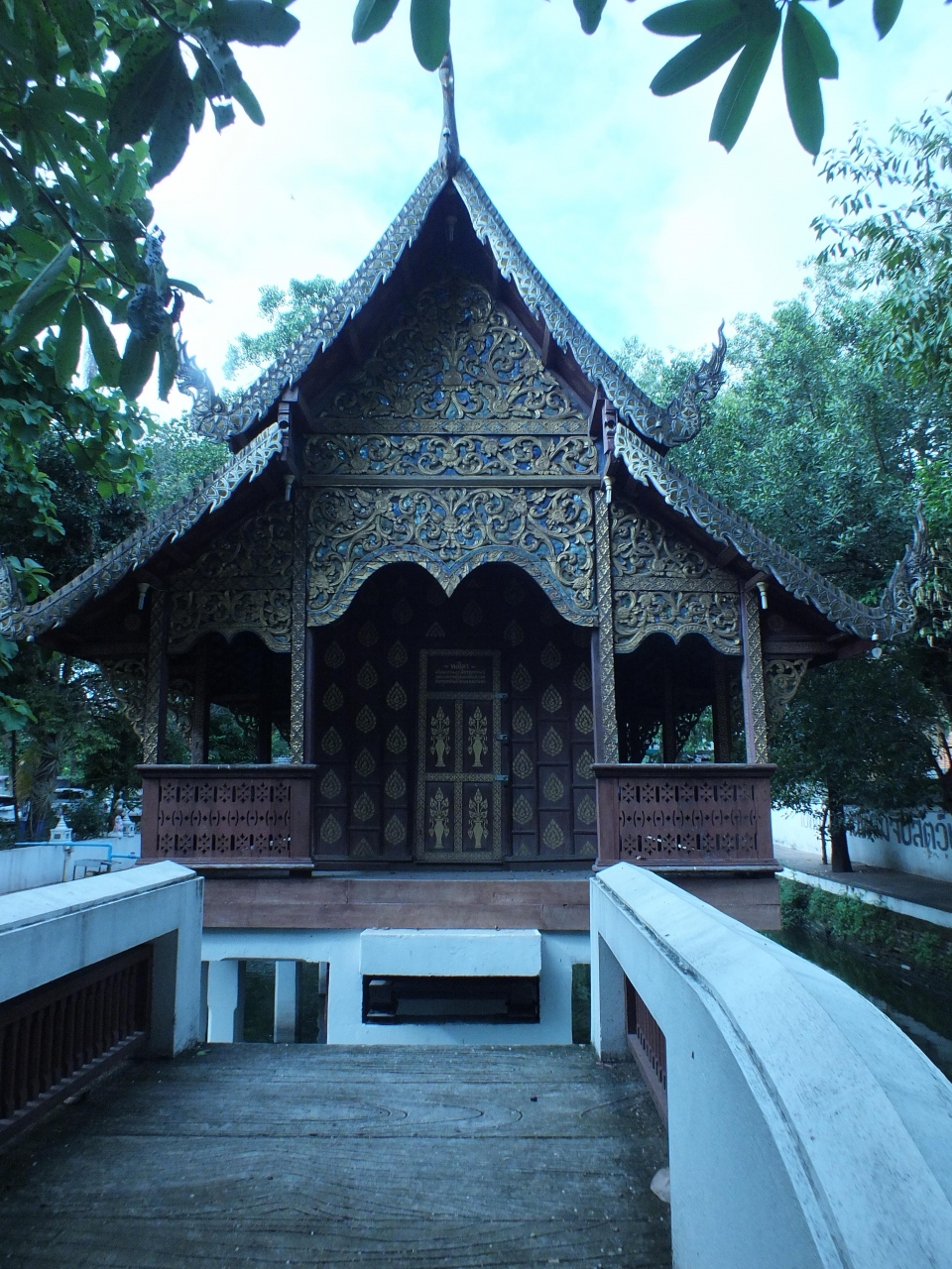 チェンマイでも古いお寺だそうです。朝九時前に行ったので他に参拝客は無く静かでした。境内を掃除している方と功徳をするために逃がす鳩か雀を売っているおばさんが居るだけでした。見事な彫刻の本堂と金色の仏様が見事でした。他に人がいないのでのんびりお堂を見ることが出来良かったです。