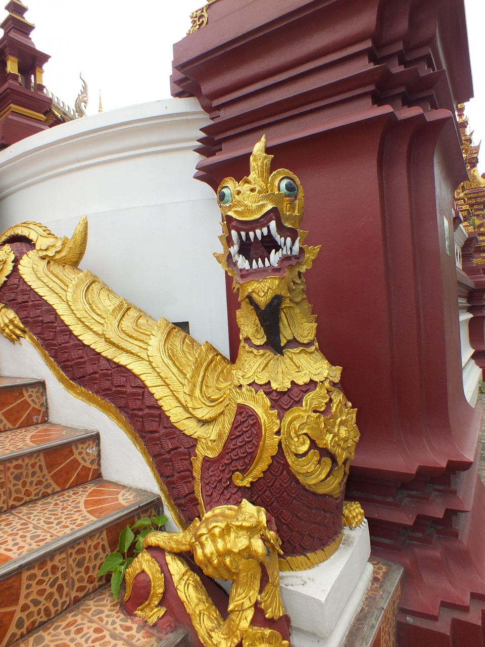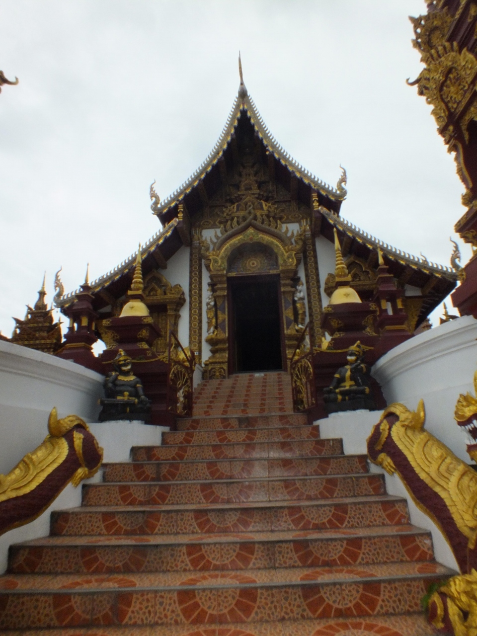 ワットローク・モーリーに行った時に見つけて行ってみました。お堀の向こうに見えるのですぐに解りますし、お堀を渡る橋も有ります。通りに面した本堂入り口から階段で上がれますが、そこで裸足に成らないと行けないので、先に境内に入り、本堂の脇の1階から入った方がいいと思います。本堂は2階建てでどちらにも仏像がいらっしゃいます。ここの仏様は仏教というよりヒンドゥー教の神様の様です。二階には大仏様も有り、広い回廊を回れます。随所に見事な彫刻が施されていて見応えがあります。