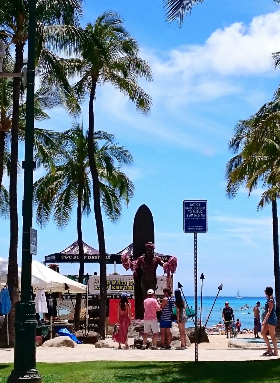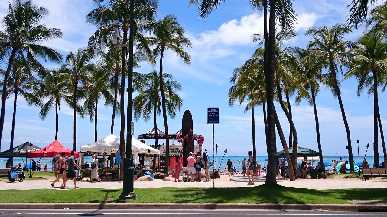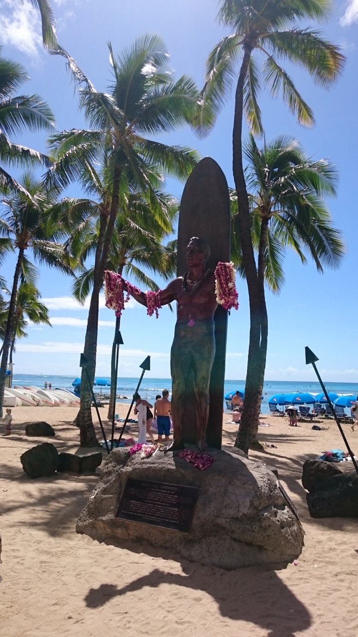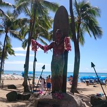観光スポットというより、ワイキキに行くと必ずや像の前を通過していると思います。記念写真を一緒に撮りたい方はほんの少しだけ待たないといけない感じです。必ず誰かが記念写真を撮っています。ベタベタですが記念写真を撮るのにはオススメです。天気が良い日を狙いましょう。