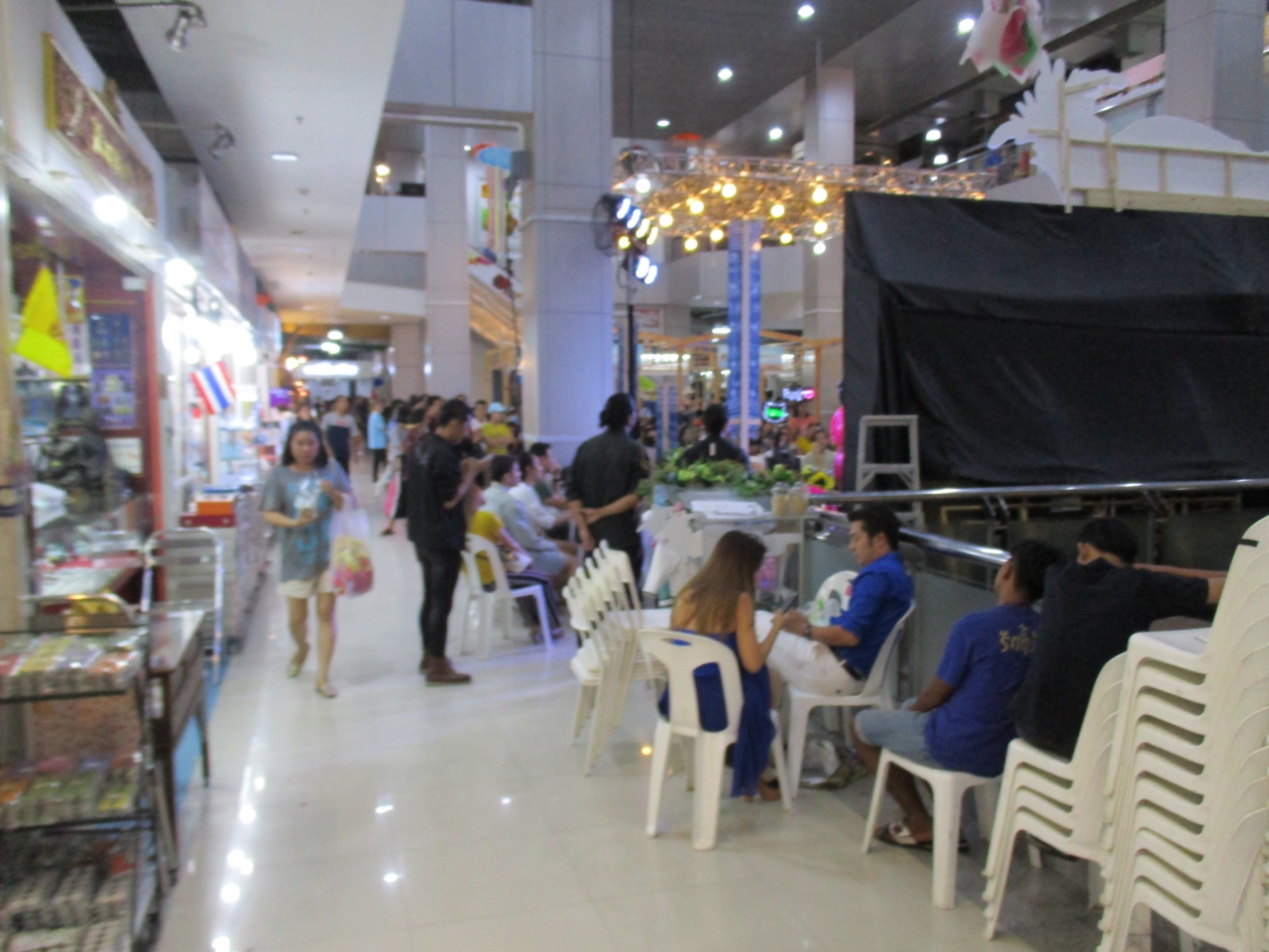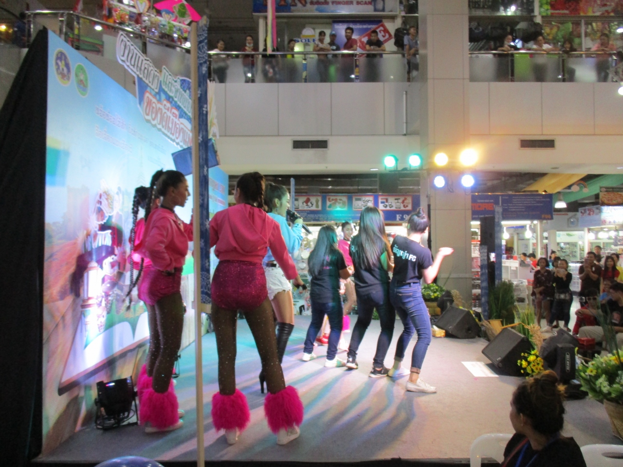 バンコクのなかではローカルなショッピングセンターで、平日は静かな店内ですが、週末は人が集まることから賑やかなイベントを開催しています。特に、子供連れの客層をターゲットにしたエアロビクス的な健康にまつわるイベントを見かけました。