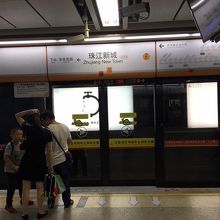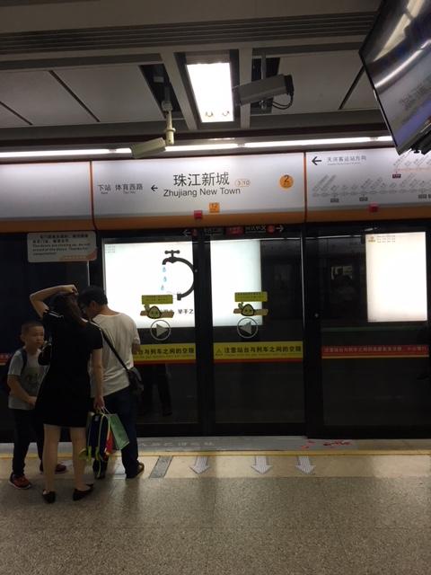 広州地下鉄の3号線と5号線の乗り換え駅です。広州空港から5号線の五羊邨駅のホテルへ向かいました。まずは空港駅の騎場南で3号線に乗車です。この珠江新城駅で5号線に乗り換えたかったのですが、電車が一つ手前の体育西路止まりで、ここで反対ホームに来た同じ3号線に乗り換えて珠江新駅です。