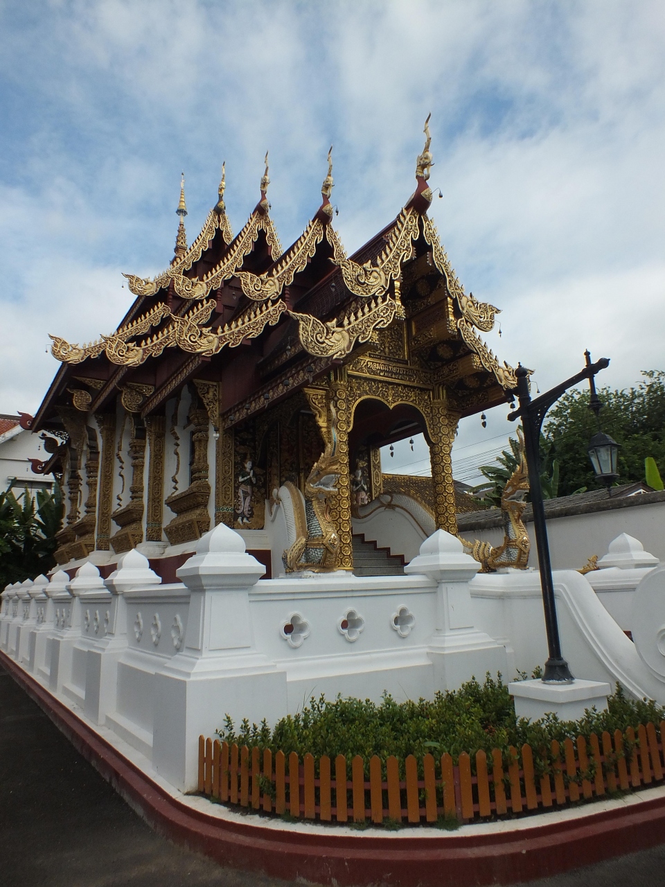 ワット・チェンマイの裏手にあります。本堂等はかなり立派でした。ただ、残念な事に本堂の扉は閉ざされていて、中を見ることは出来ませんでした。まるで宮殿の様なお堂、石作りで年代を感じさせる仏塔、高くそびえる別のお堂と各お堂に施された彫刻の仏様、本当にお堂の中に入れなかったのが残念ですが、お堂を見るだけでも価値はあります。