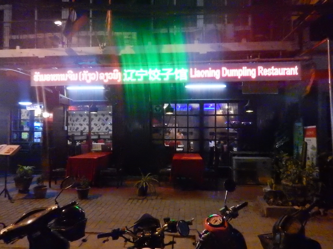 初日はトマトと卵の炒め物。2万8千キープ。ビール1本1万5千キープ。トマトと卵の炒め物はどこへ行っても安くて美味しいのでよく食べる。翌日は昼食に餃子のみを食べる。1万8千キープ。ここに来たら餃子は外せない。