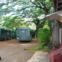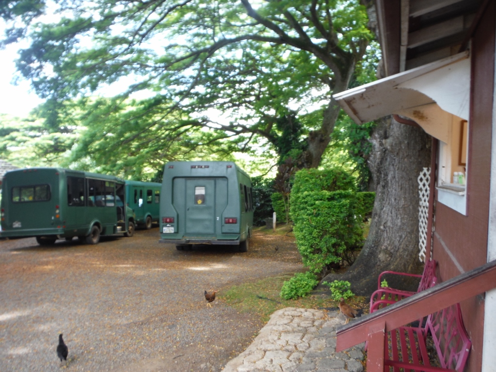 オアフ島観光ツアーの途中にお手洗い休憩がてら立ち寄りました。周りは切り立った岩山が迫り、大自然の中にあります。色々なフレーバーのコーヒーやマカデミアナッツの試飲・試食ができます。試飲はチップの箱が沢山置いてありました。敷地で鶏が飼われていて裏庭で駆け回っています。