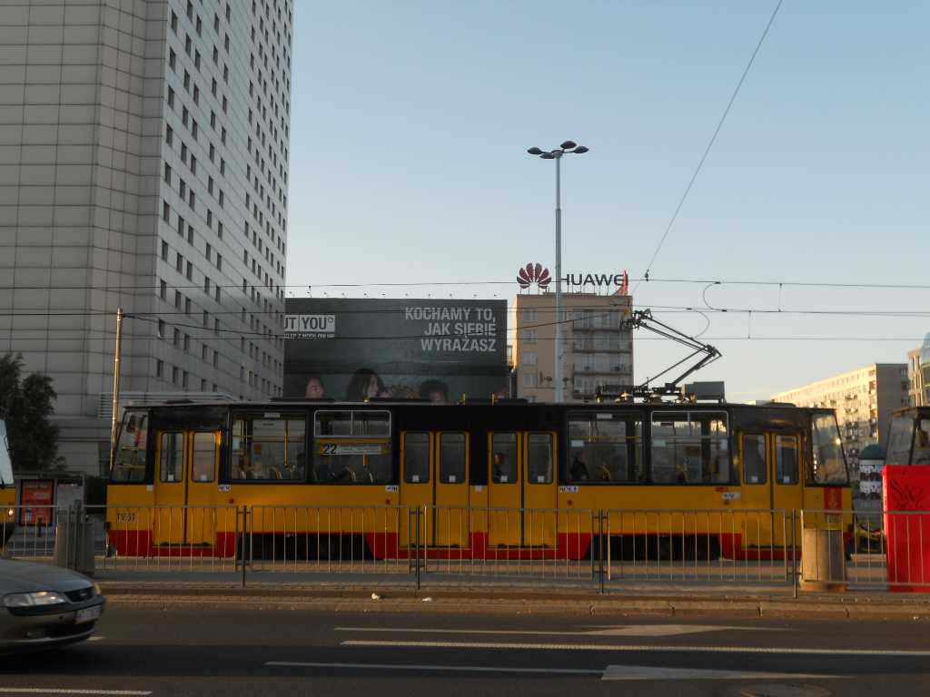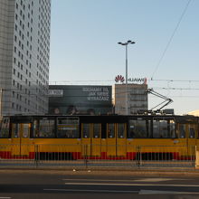 ワルシャワ中央駅の南側を東西に通る主幹道路で、トラム・バス・車の交通量がとても多い通りです。