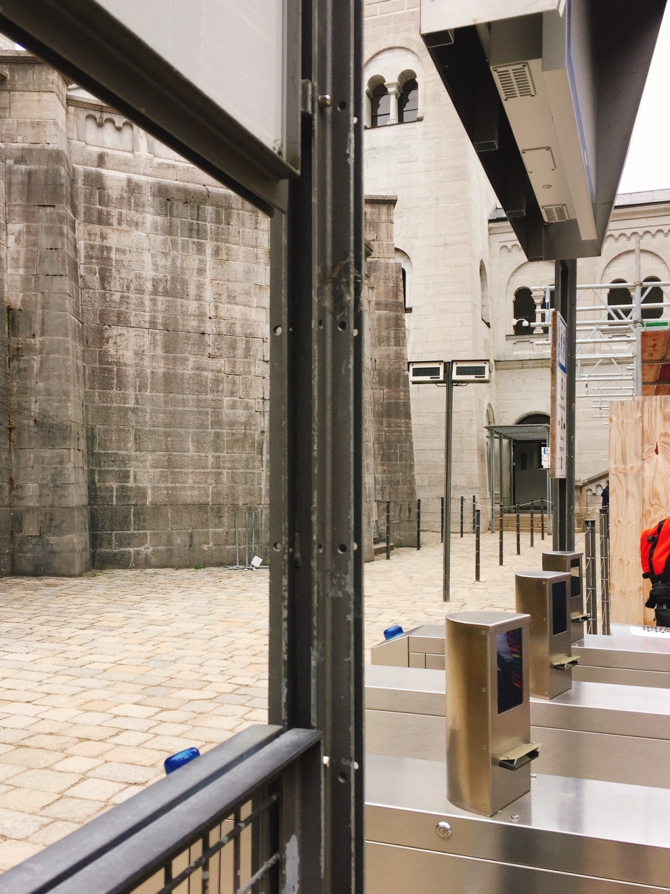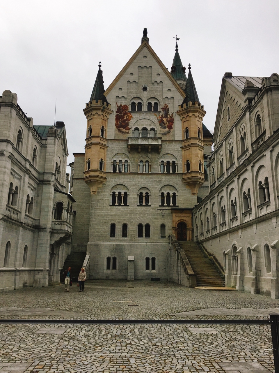 ノイシュバンシュタイン城を入って音声ガイドを聞きながら、グループごとに係員に誘導されて前へすすみます。