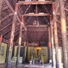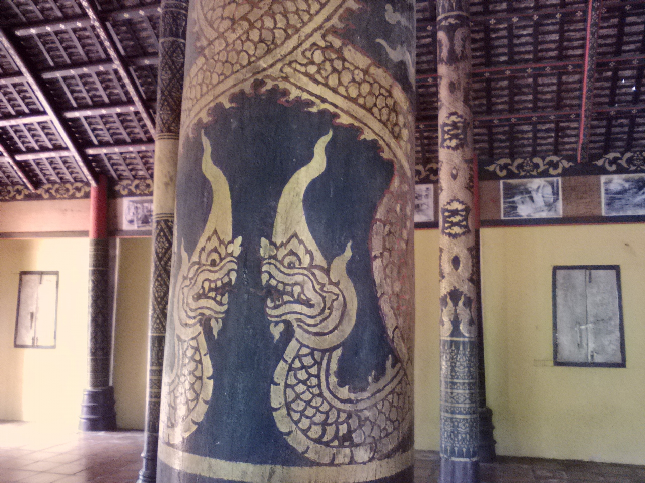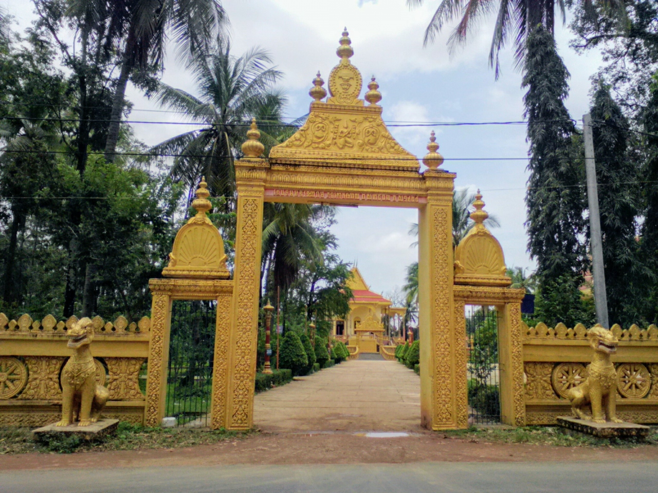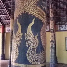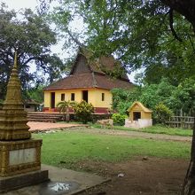 クラチエ市場から南に約2km。舗装された道路を行くと左手に見える金色の門の奥にあるのが新しい寺院。こちらはいたって普通です。見どころとなっている古い寺院は道路を挟んだ右手にあります(メコン側)。約200年前に建てられたものですが外壁のペンキが塗り替えられてしまっていて趣きは半減。しかし屋根に残るブッダの透かし彫りと内部は当時のまま残されています。この日は扉が開いていたので内部を見ることができました。なんとも雰囲気のある木造の造りで細部を見入ってしまうほど。柱に描かれているナーガも必見です。見学無料。メコン川沿いの小道からも行けるので散歩がてらにちょうどいいと思います。