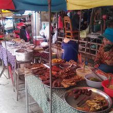 立地的にも賑やかさ的にもクラチエの中心となる市場です。何よりも助かるのが1日中場外におかず屋台が出ていること。市場でテイクアウトすればどこよりも安く食事をすることができます。鍋に入って並んでいるおかずは1品2000R〜、ご飯は1000R〜、肉や魚は大きさによりますが1000R〜、漬物類は500R〜買うことができます。あれこれ選ぶのも楽しいし、市場めし最高です。朝と夕方は結構混み合います。