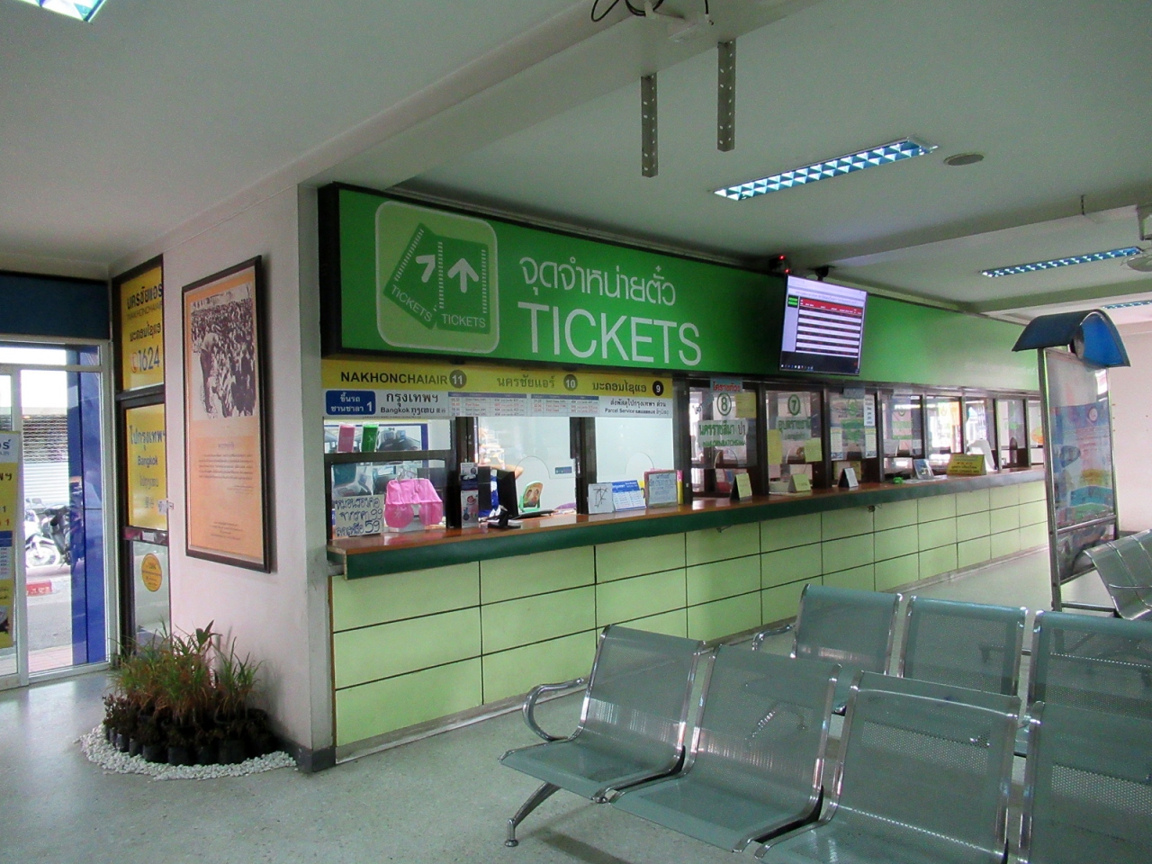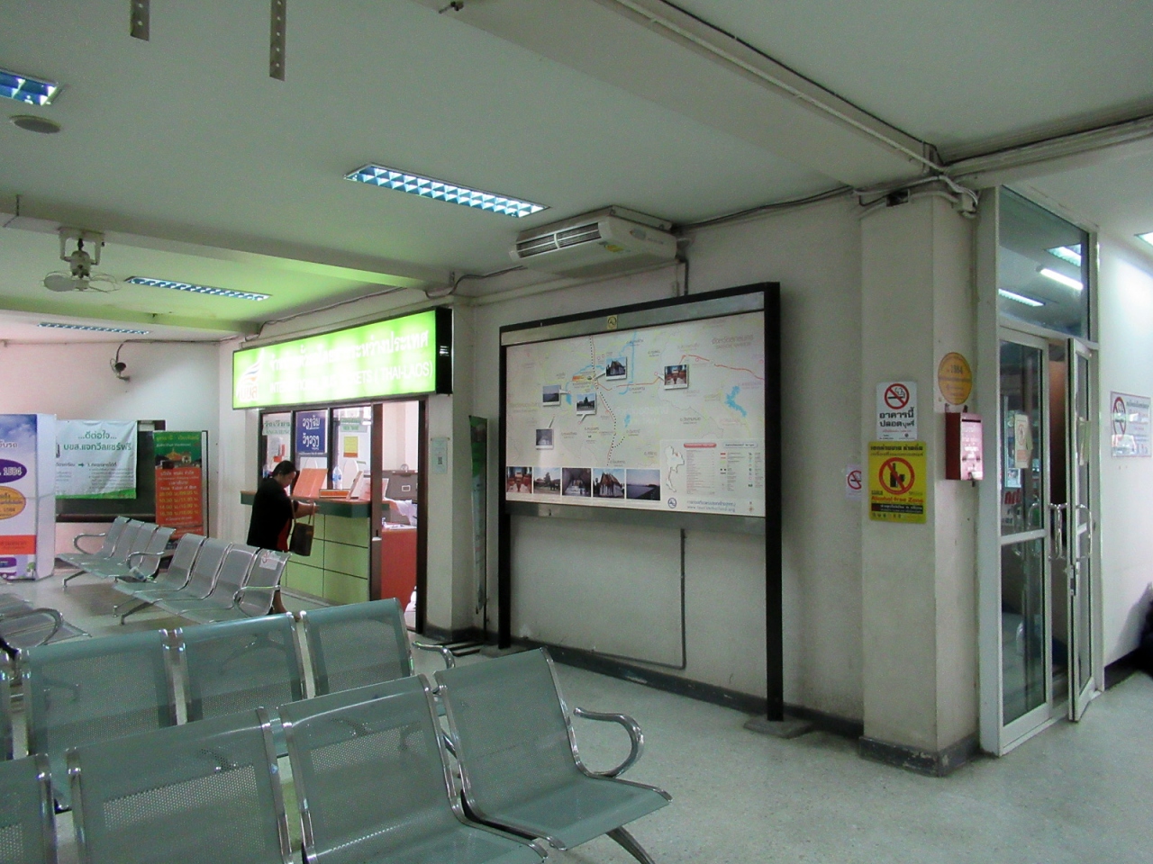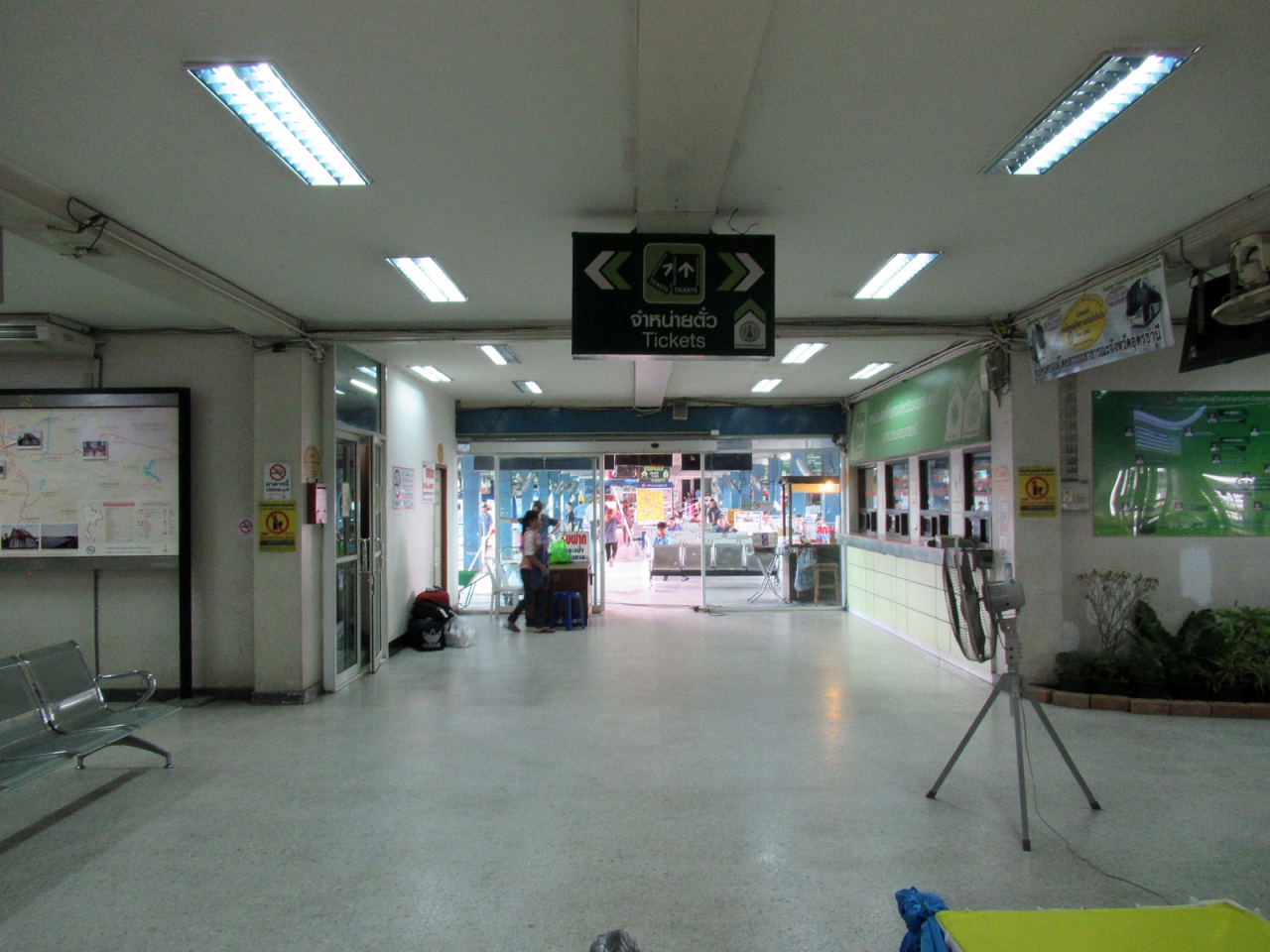 セントラルプラザから徒歩3分の第1バスターミナル、街の中心地にあって、とても便利ですが、チケット売り場の仕様と電光掲示板以外、10年前と何も変わっていないと思います。たしかに建物は古いけれど、特に問題はないのでそのまま、タイの合理性ですね。初めての利用でも、そこらにいるバス関係者みたいな人に尋ねれば、すぐに教えてくれますし、各柱などにはスケジュール表が貼られていたりします。あとは、冷房の効いた待合室があれば良いのですが…。