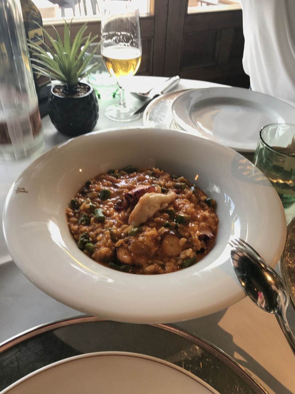 トレド観光の途中にランチに伺ったパラドール トレド内のレストラン。13時に行ったら予約なしでも入れました。タコのリゾットや山鳩の丸焼きなどをいただきましたが、サービスも良く美味しかったです。窓からは旧市街がよく見えステキなレストランでした。