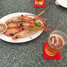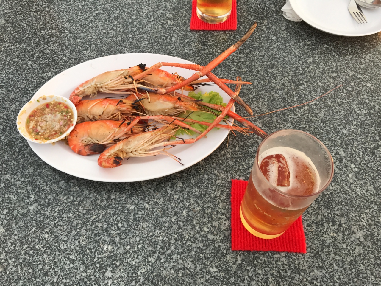 二人で焼きエビ、チャーハン、ビールなどで一人650B。