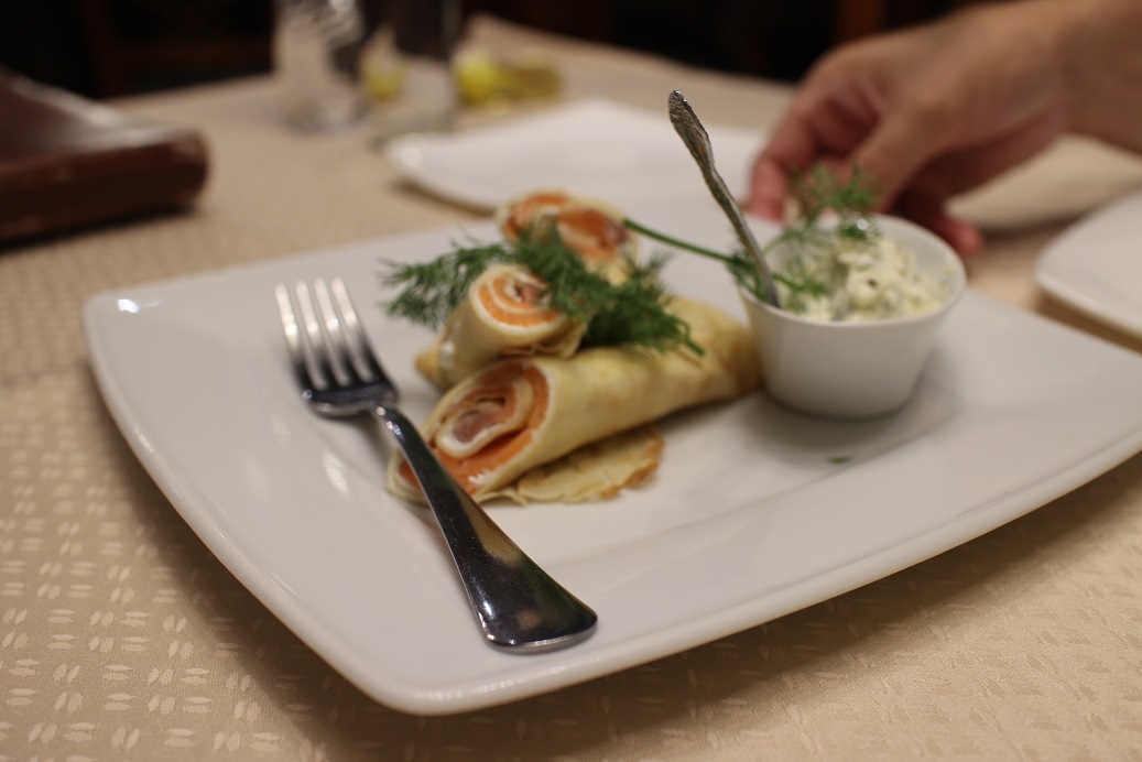 サーモンのブリヌイが、日本人の口にも合いとても美味しかったです。