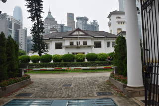 英国の植民地時代、香港に君臨した総督の官邸です。ピークトラムの乗り場を左手に見てどんどん坂道を上がっていくと、米国領事館を過ぎた辺りに右手に見えてきます。警官が警備に建っていて中には入れませんでした。旧日本軍が太平洋戦争の初期に香港を占領したときには軍司令官が入居し、日本風の部屋を屋根に追加して造りました。今でもその部屋は残っています。植民地時代を伝える歴史的な建物です。