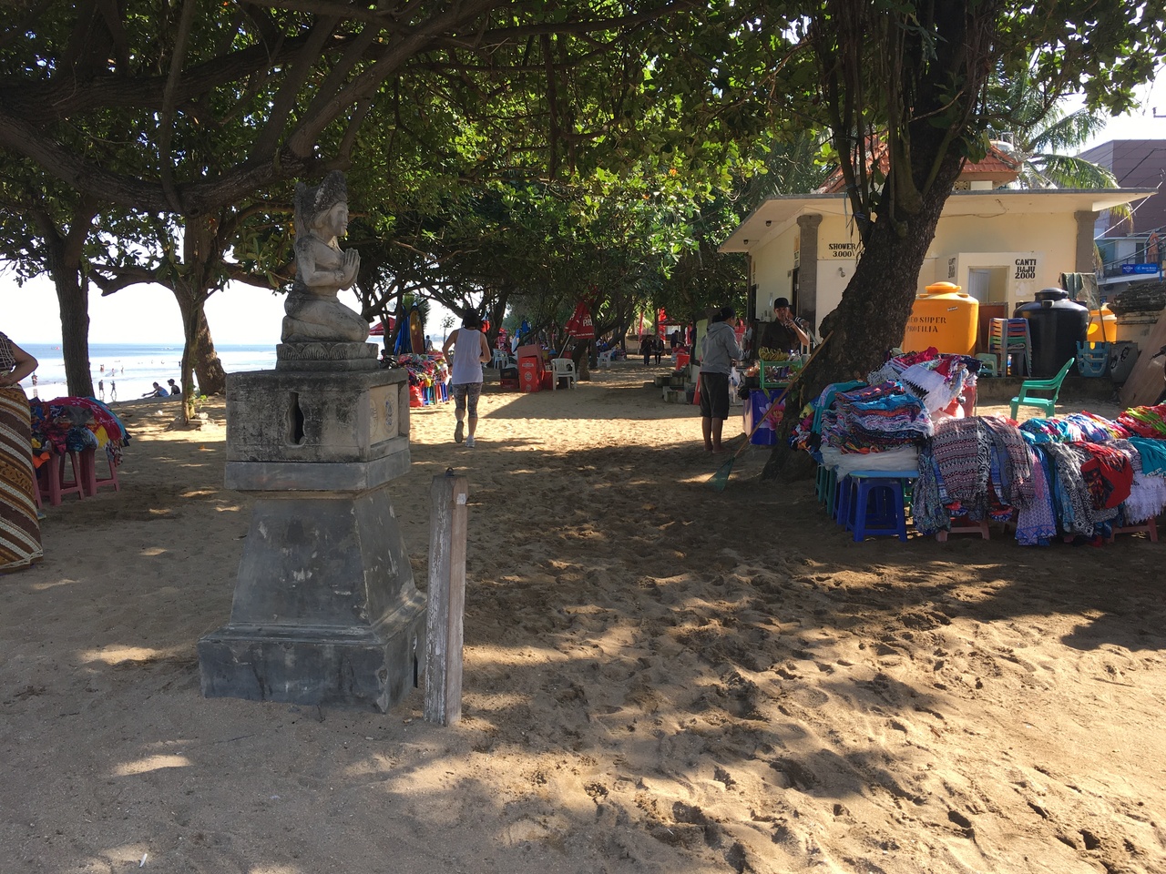 日中にクタビーチの近くを通ったため寄り道しました。近くには小さな市場やビーチウォークと言うショッピングモールもあるためこちらのビーチも人が多いです。ビーチ自体は木がたくさんあり木陰があって歩いていて気持ちの良い感じでした。