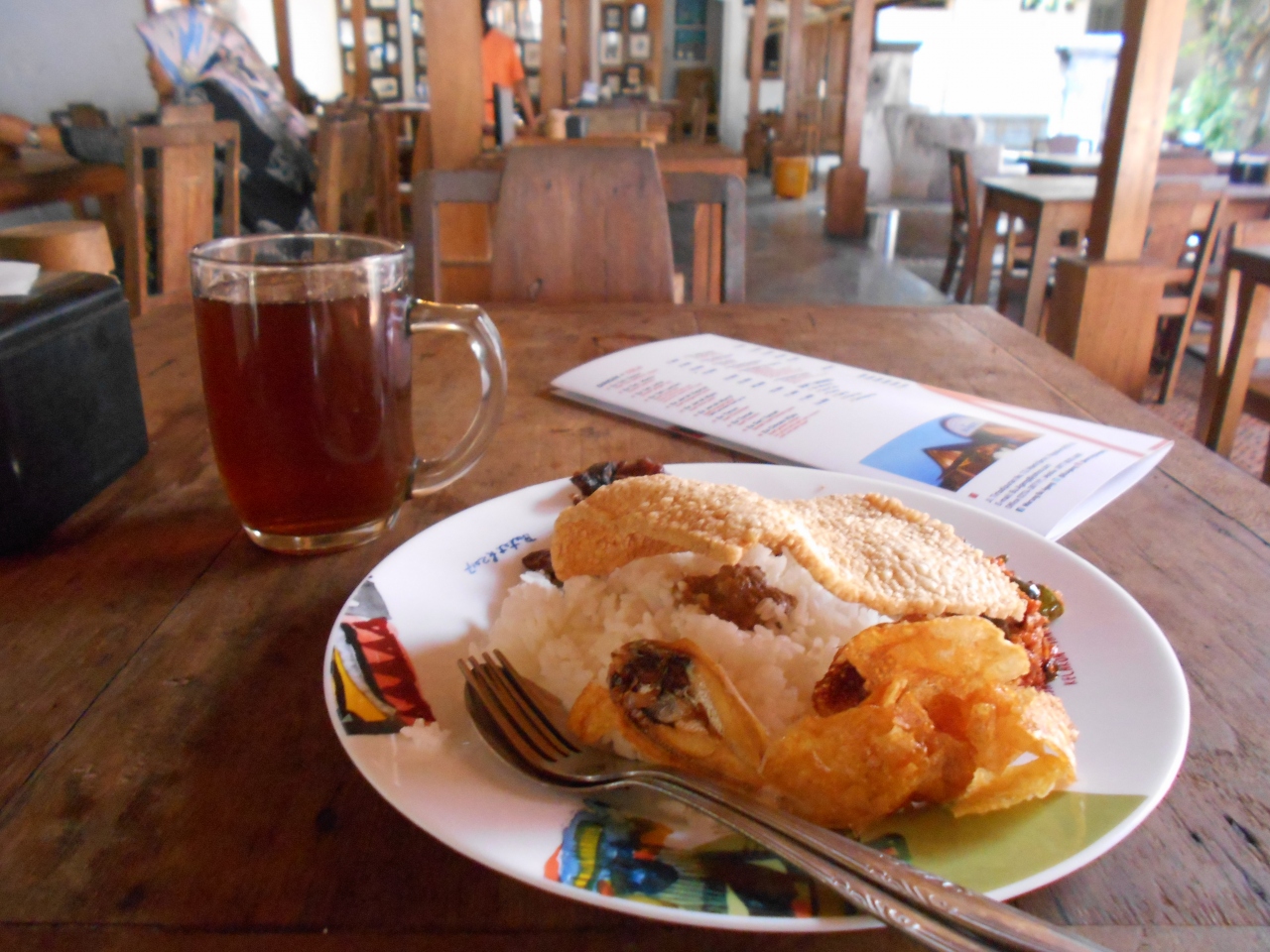 有名ガイドブックには必ず載っているほどの有名店。マリオボロ通りからかなり離れたプラウィロマタン地区にあるのにかなりの人気店。ナシチャンプルは1皿僅か35000ルピア前後。ソフトドリンクをつけても500円いかない。ビールが置いていないのだけが残念。