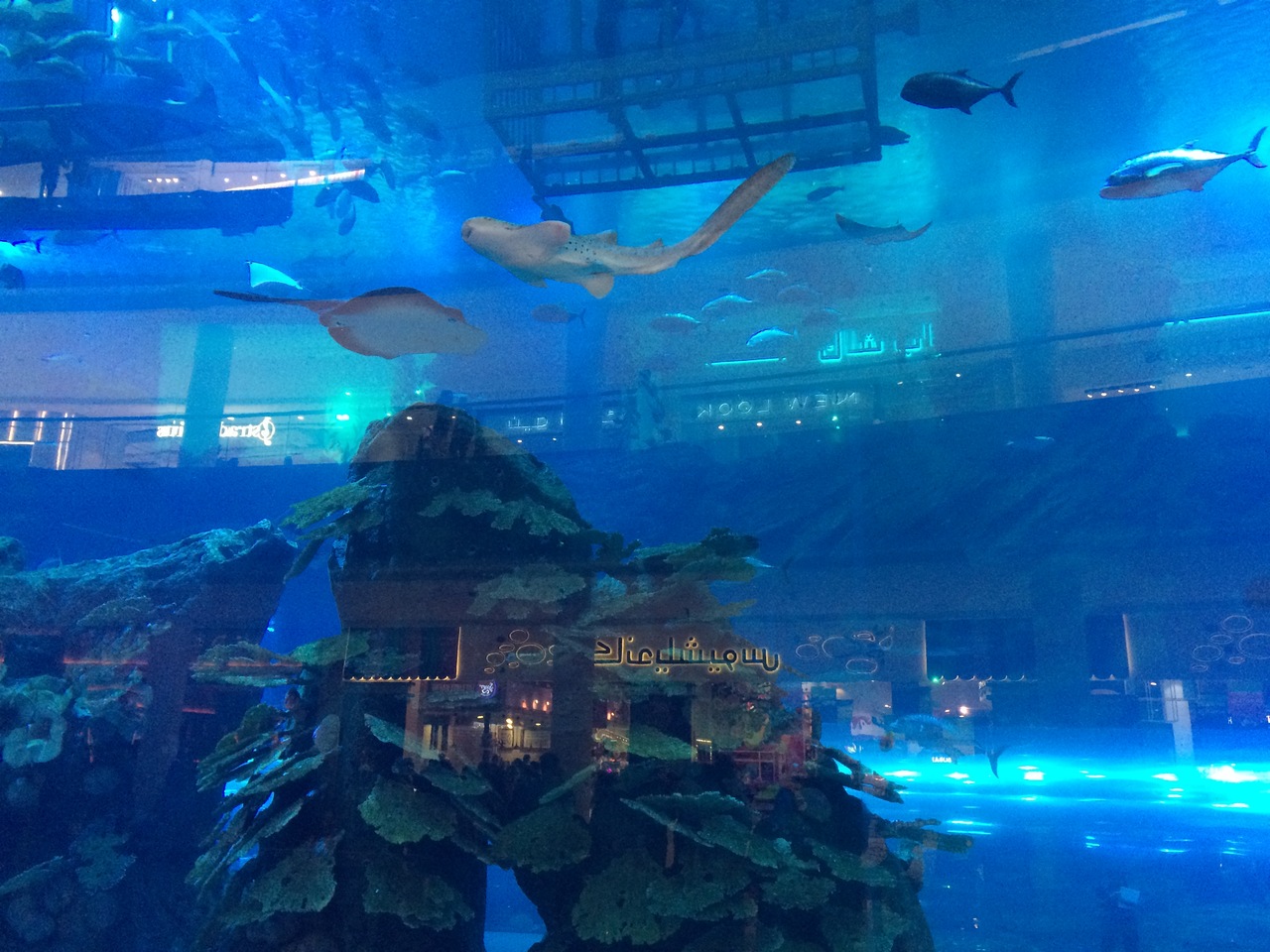 ドバイモールの中にあるドバイ水族館。ショッピングモール側からもみれるので、たくさんの人で賑わっていました。