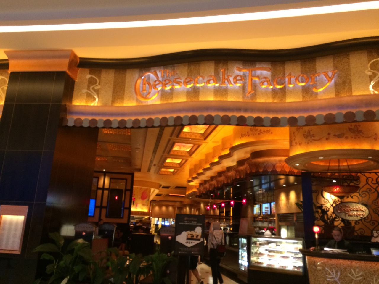 ドバイモールの1階にあるチーズケーキファクトリー。ドバイダイノがあるスーク側からも入れるし、ドバイ水族館の大水槽前からも入れます。ロケーション、抜群のお店です。