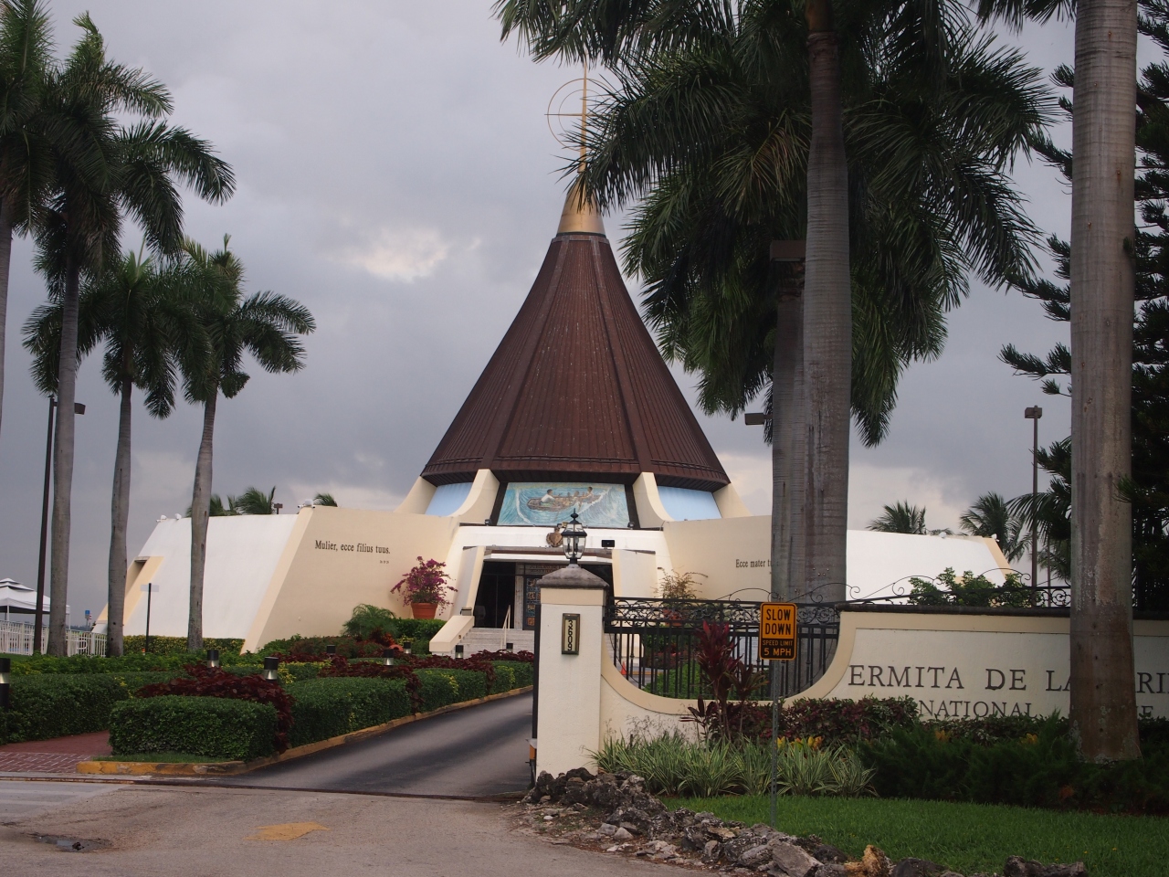 インマヌエル・ラ・サール高等学校(Immaculata-La Salle High School)の内部に建てられたローマンカソリックの美しい教会。とても入り口の広い解放感のある教会はビスケーン湾(Biscayne Bay)の海の色に映えています。隣にはMercy病院があります。