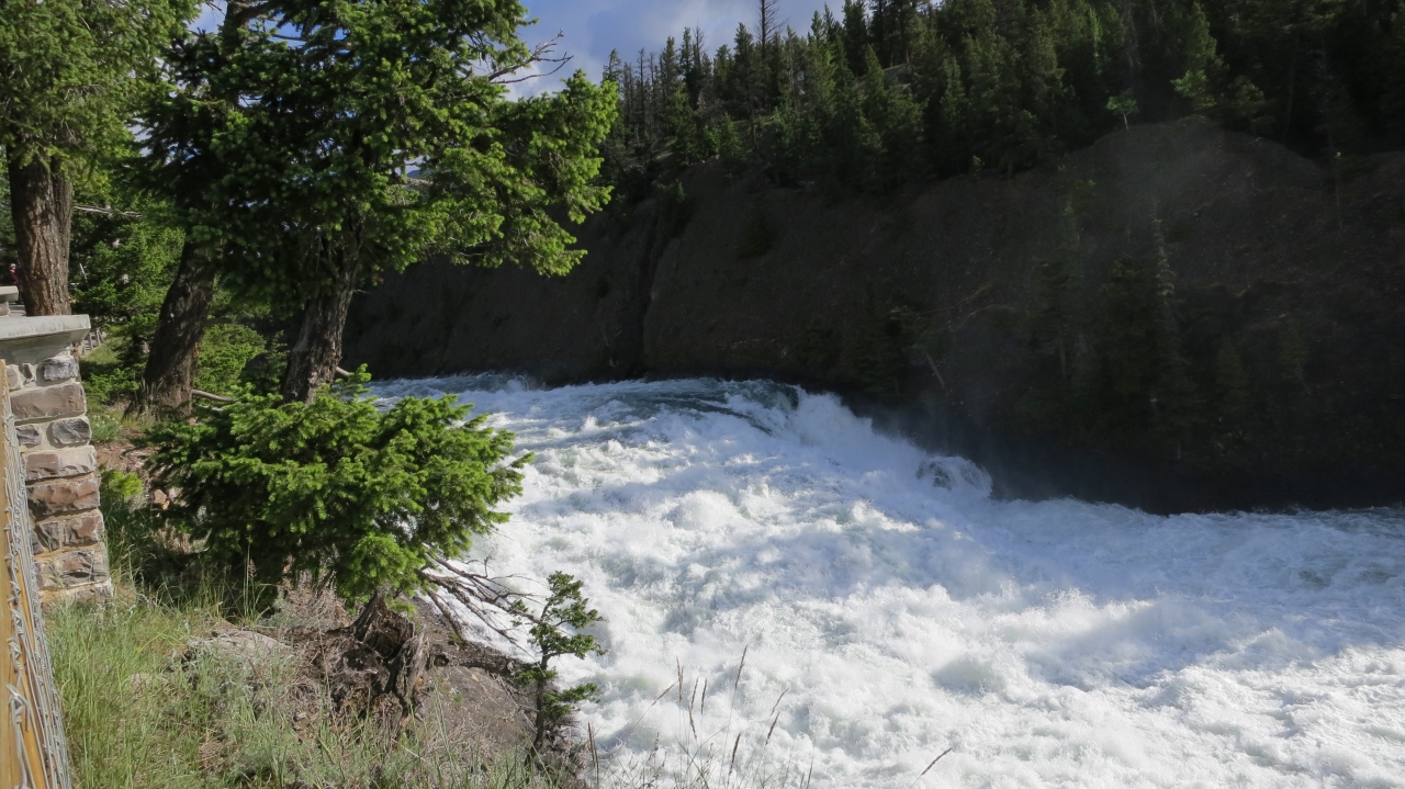 バンフの観光名所です。そのためボウ川の脇にある駐車場はフルでした。でも、回転も速く、しばらく待っているとどんどん車が入れ替わってゆきました。ボウ滝は滝というわりにはあまり高低差はありませんが、それでも流れが結構あるせいか迫力は十分でした。