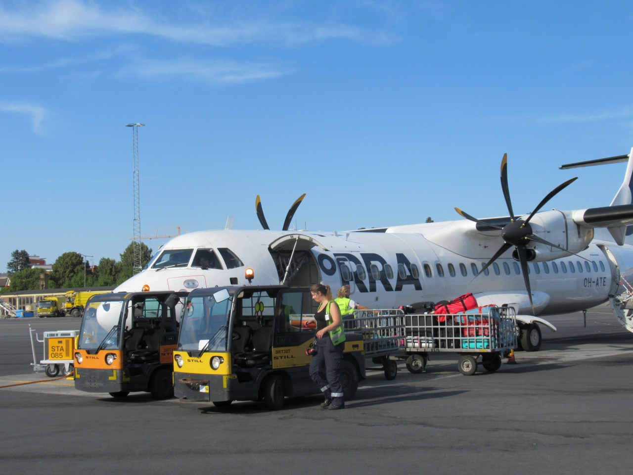 ヘルシンキ・ヴァンダー空港からストックホルムブロンマ空港まで、フィンエアーで利用。飛行機はフライビー・フィンランド(ノルディック・リージョナル・エアラインズ)のちっちゃなプロペラ機でした。ブロンマ空港はほんとに小さい空港です。飛行機を降りたらそのまま地上を歩いて進み、もう入国審査はないので荷物を持ってさっさと空港を後にしました。空港を出たらすぐにバス乗り場があり、20分でストックホルム中央駅近くに行けました。