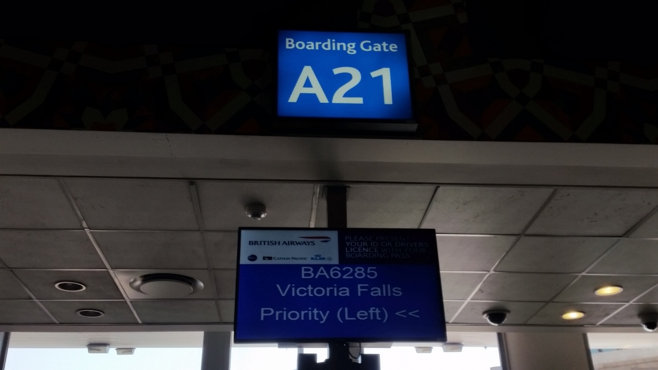 成田から香港経由でヨハネスブルクへ来ました。そしてビクトリアフォールズへ乗り継ぎました。乗り継ぎ時間が2時間ほどあったので、お買い物とラウンジで、ゆっくり過ごしました。搭乗口は直線状にあり分かりやすかったです。