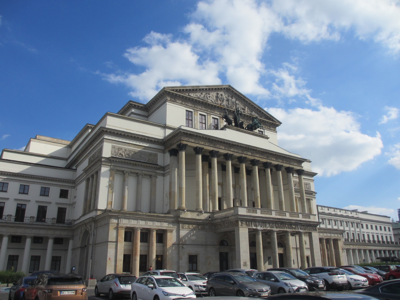 ポーランドには個人旅行で行きました。ワルシャワの街はすべて徒歩で散策しました。王宮広場や旧市街広場周辺を観光した後に宿に帰る途中にこちらの建物を見ました。彫刻などが凝っている建物だと思いましたが、建物の前にたくさん車が停まっているのが景観を損ねていて残念でした。