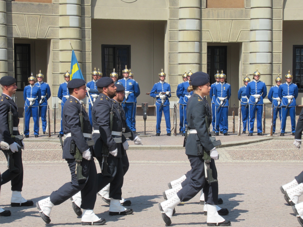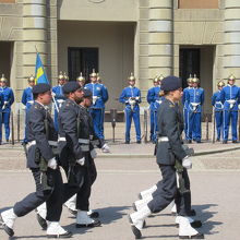 12:15~の衛兵交代式は大人気ですごい人です。早めに行ったのですが間違えて中に入ってしまいました。気づいて後から行くともう人人人でした。けっこう長いので途中で帰ってしまう人もいるので、交代で入れたので後半は前で見ました。演奏はマンマミーアなど楽しい歌がたくさんあった。アナウンスで曲紹介などをしていたのが新しかった。楽隊はバスでやってきてバスで帰っていった。王宮の教会は無料で入れました。