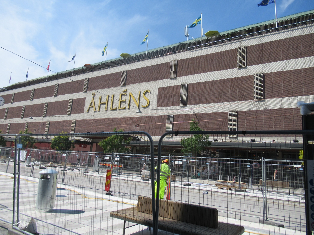 セルゲル広場に近いです。前の道が工事中でした。地下2階にスーパーマーケットHemkop(ヘムショップ)があります。営業時間は7:00~23:00です。日本とは違うディスプレイで量り売りが多い。チーズの種類が多い。サーモンのお寿司なんかもありました。もちろん袋は有料です。ペットボトルを買ったら、ペットボトル代1SEK支払いました。返すと返金してもらえます。