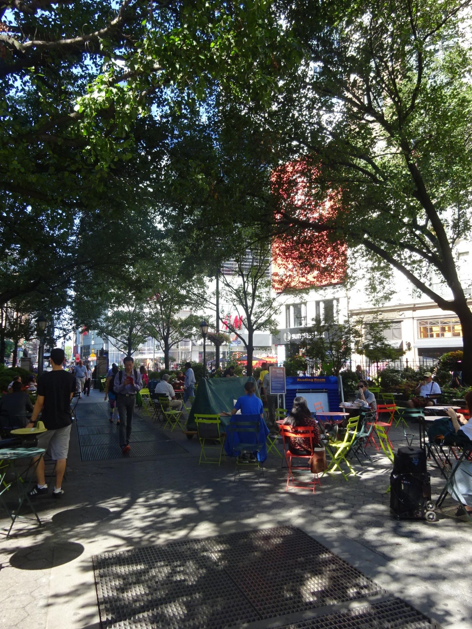 周辺は繁華街の中にある小さな公園、大都会の中にちょっとでも緑があるとホッとしますね。海外ではこういうスクエアは多い、日本も最近増えてきましたね。