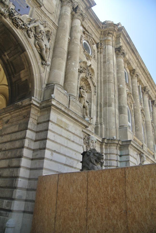 広場への入り口にライオン像がありますが、工事中でそのライオン像の一部が塀で隠れていました。そのせいでもないでしょうが、、観光客もほとんどおらず、がら~んとしていました。周囲は美術館となっている王宮の建物でぐるりと取り囲まれています。