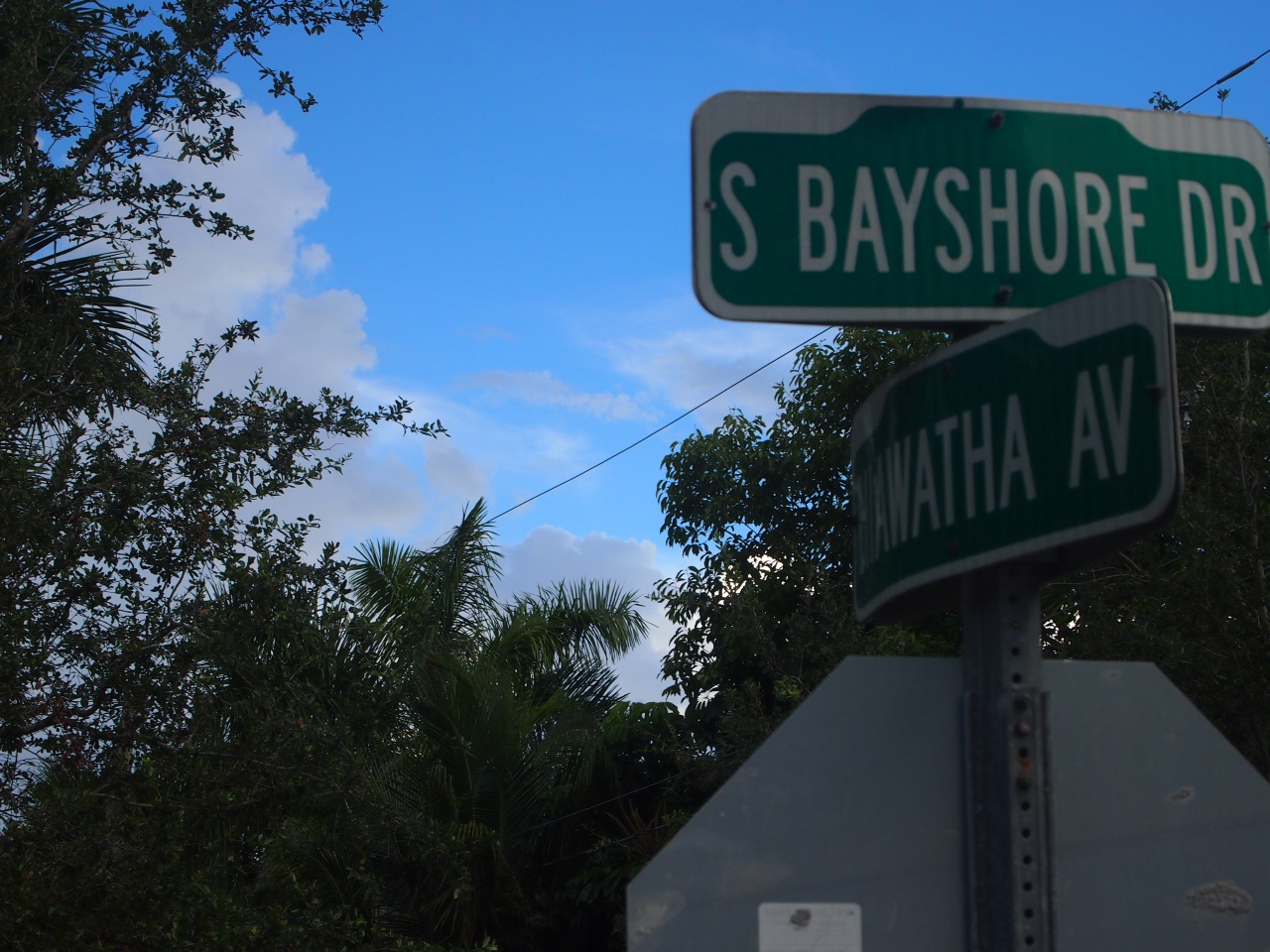 ココナッツグローブの海沿い、南のピーコックパークからグローブアイランドまでの3km弱の道路がサウスベイショアドライブ(South Bayshore Drive)です。ココナッツグローブ有数のマリーナや公園が立ち並び、自動車の通りも少なく散歩にも快適な道です。