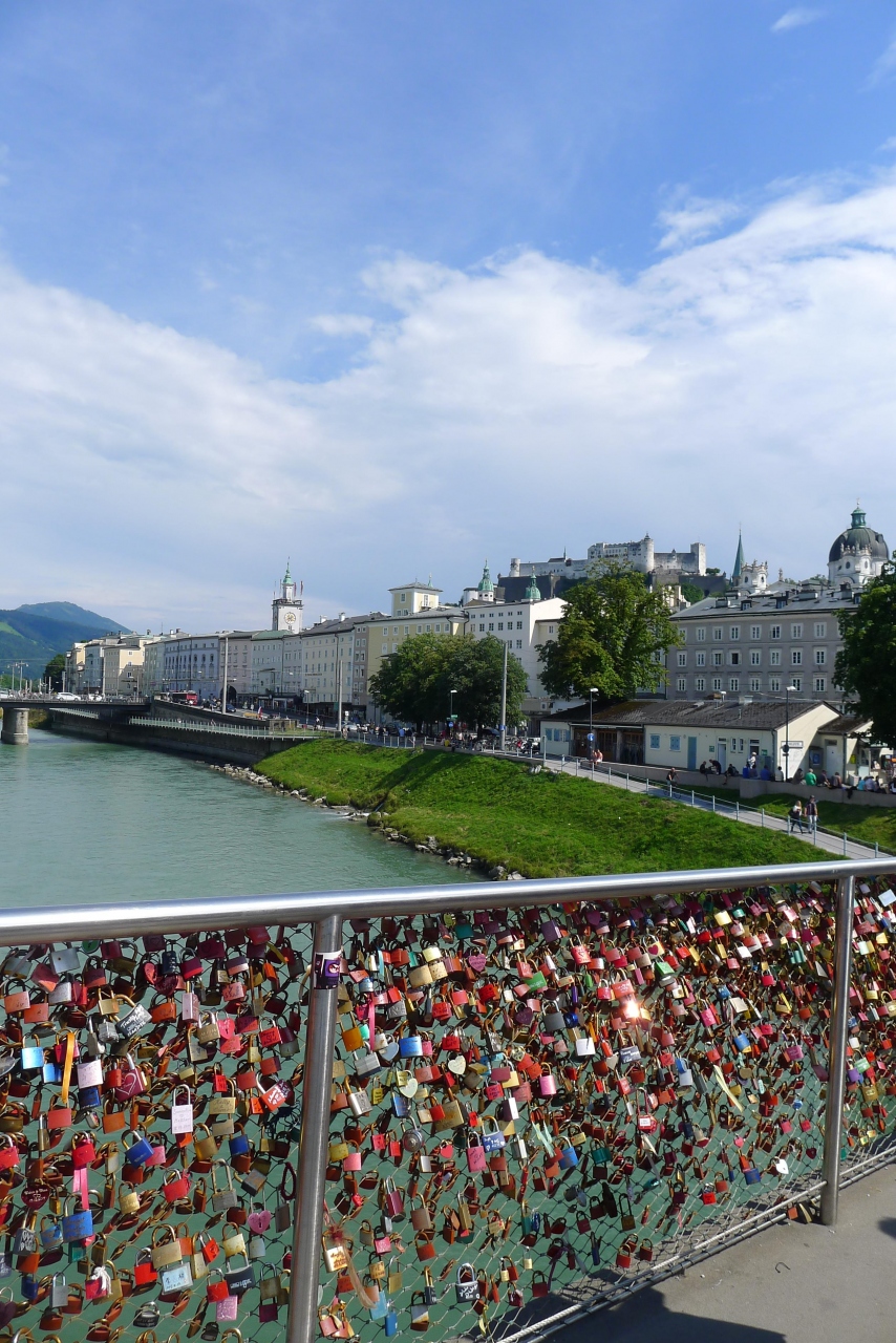 ミラベル宮殿から旧市街に行くときに渡った橋ですが世界各地に習って南京錠がぶら下がっていて恋人達のメッカになっている感じでした。ザルツァッハ川は水量が多く川沿いには散歩したり休憩したり憩いの場所になっていました。