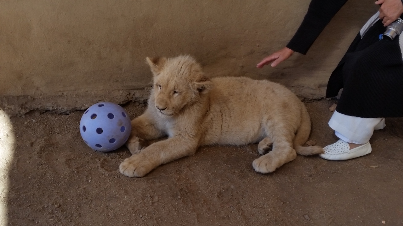 子ライオンとふれあえます