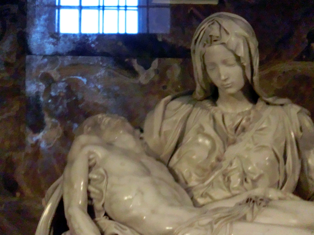 ミケランジェロはキリストの死を悼む聖母マリアをモチーフとしたピエタ像の製作を4度試みており、完成したのは最初に作ったこのサン・ピエトロのピエタのみだと言われています。