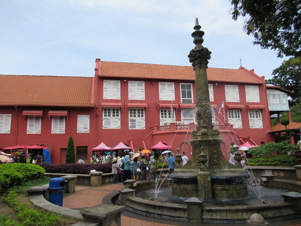 今回はマラッカを旅行しています。ここ「オランダ広場」はガイドブックの表紙にも載っている場所で言うまでもなくマラッカ観光の中心地となっています。周囲にはオランダ統治時代に建てられたスタダイスやマラッカキリスト教会などの赤い建物を見ることができます。そして「ビクトリア女王噴水」はこの広場内にあって、イギリス統治時代の1901年に建てられています。噴水していて多くの観光客の撮影スポットとなっていました。また、マラッカ時計台や「I LOVE MELAKA」のモニュメント、風車など多くの見どころがありますので楽しんでくださいね。