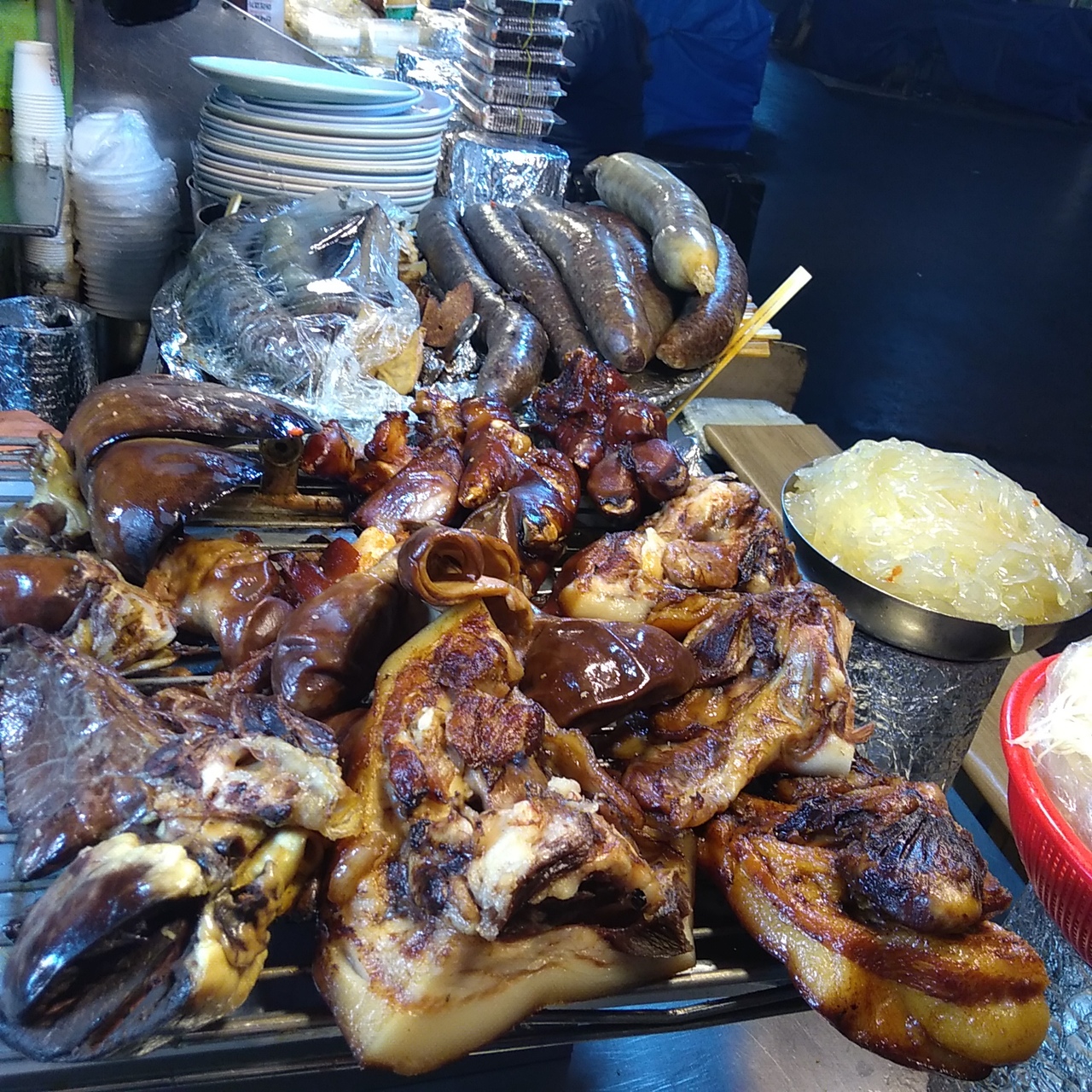 屋台が沢山出ており、おばちゃんが客の呼び込みしてます。