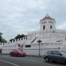 今回のバンコクは滞在時間が少なくワットプラケオの観光が目的でした。観光を終えて次の訪問地のクアラルンプールへ移動するため、ドンムアン空港行きの空港バスの停留所を探していました。事前に空港バスのコースを調べぶらりぶらり歩いているとそこに白い歴史ある建物を見つけました。「プラ スメーン砦」です。ラマ1世によって当時14の砦が建設されましたが、これはそのひとつで現在はマハカーン砦とふたつのみが残されています。チャオプラヤー川沿いにありサンティチャイプラカーン公園として綺麗に整備されています。フライトには十分時間があるのでちょっと休憩です。夜にはライトアップされているようです。ちなみに空港へのバス停はここから数百m離れたところにありました。
