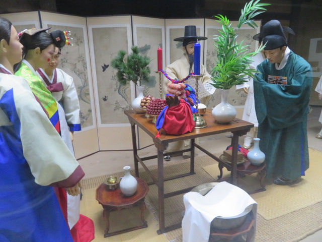 安東民俗博物館は観覧料が1000ウォンで展示室は1階と2階にあり、韓国の民俗文化である韓国の生涯の通過儀礼である冠婚葬祭などの展示がされています、又、食生活、住居生活など大きな模型・マネキンを使って紹介されています、書籍などの売店もありました。