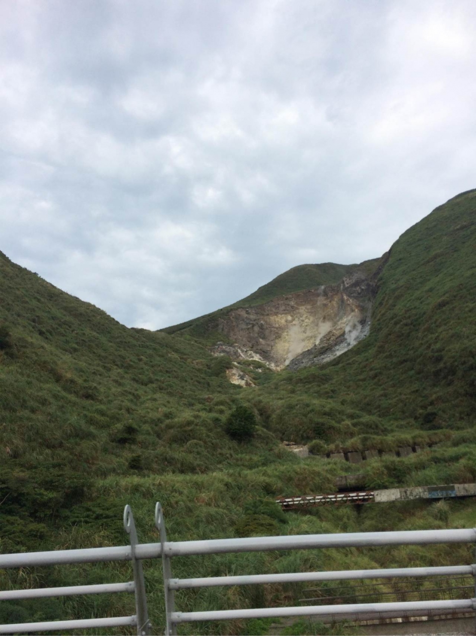 何度か行ったことのある小油坑です。煙がもくもく出ていてます。硫黄のにおいもすごいです。陽明山の緑の中にあって、違う景色なのでとても興味深いです。ふもとに小さな陰になる小屋のようなものがあり、そこでお茶を飲んで歓談している人達がいました。スケールはあまり大きくないです。