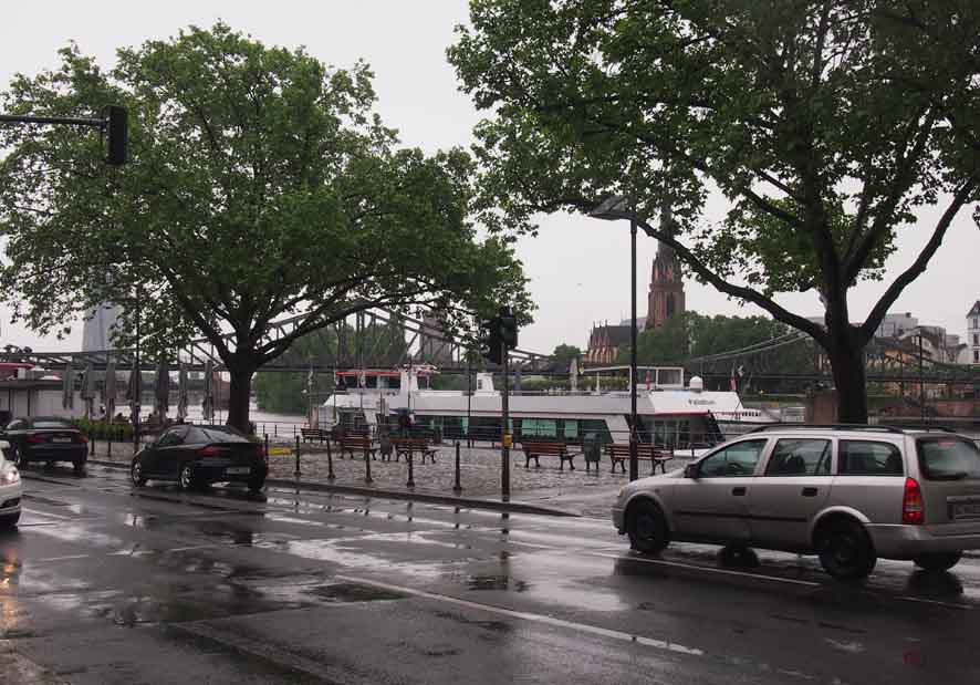 周りの建物が美しいレーマー広場から更に南に下ってゆくとやがてマイン川が現れます。そのマイン川に沿った川沿いの通りがマインカイ通り(Mainkai Street)です。St. Leonhardskirche教会やフランクフルト歴史博物館の他におしゃれなバーやレストランが点在しています。